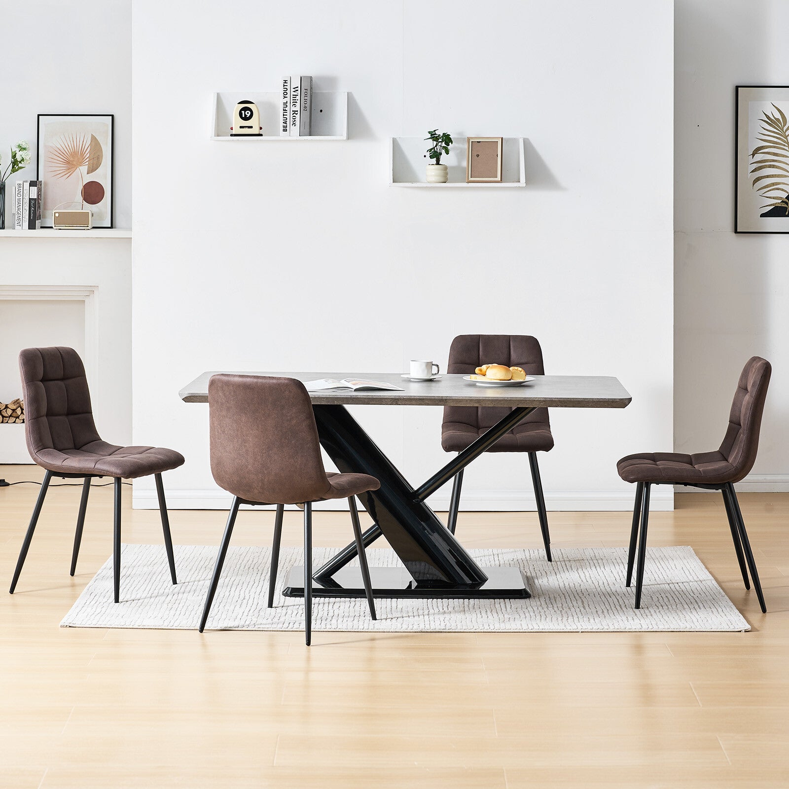 4X Dining Chairs Faux Leather Padded Seat Metal Legs Dining Room