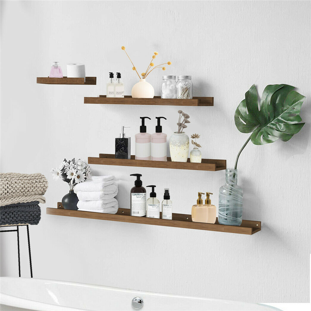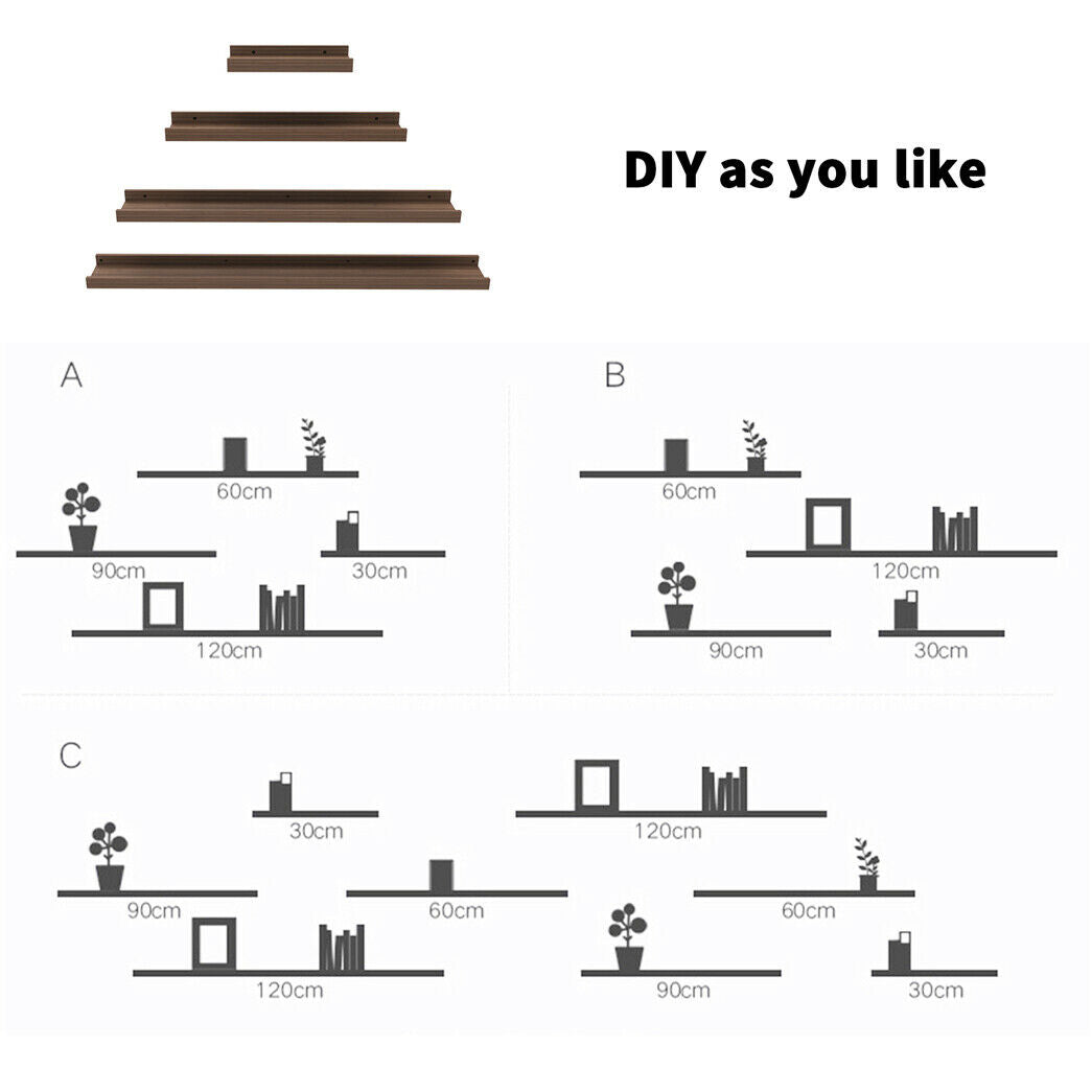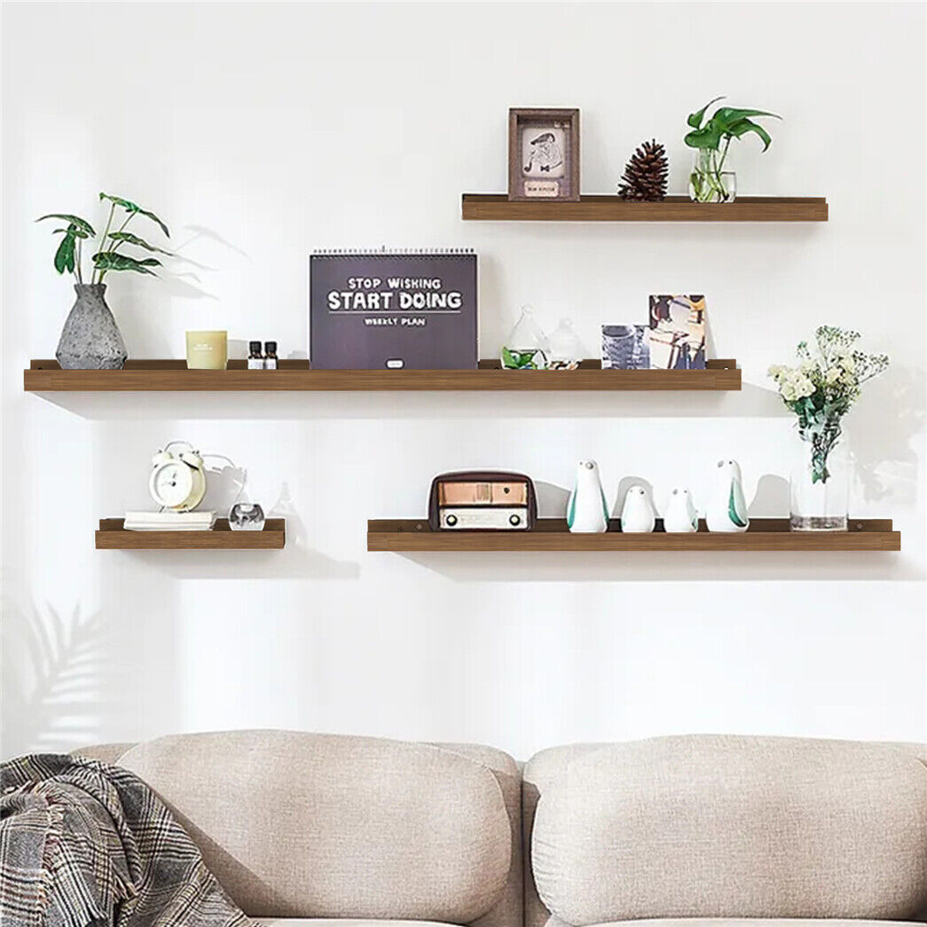 4x Floating Wall Mount Shelf Wooden Storage Shelves Picture Rack 110cm Home Deco