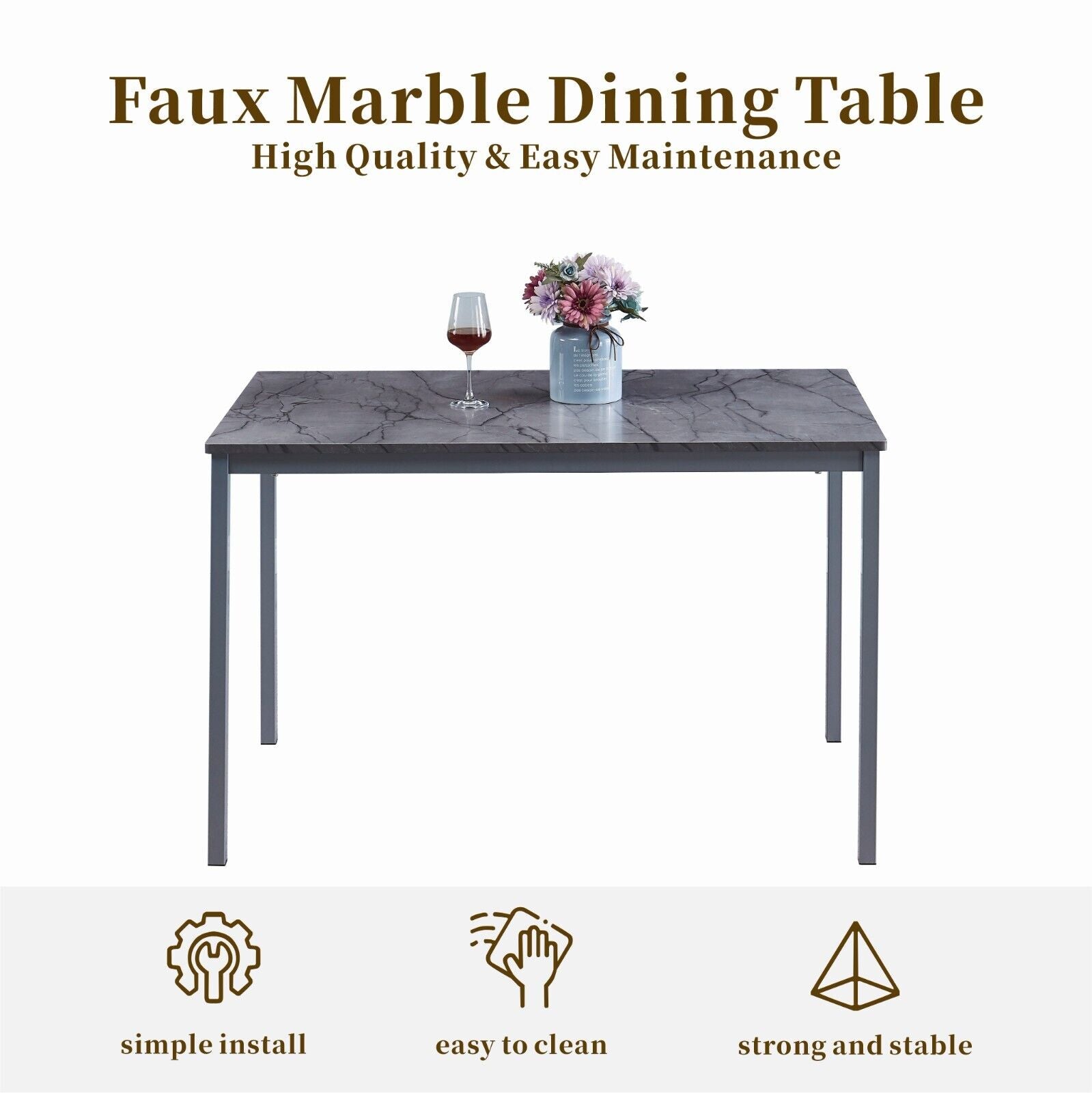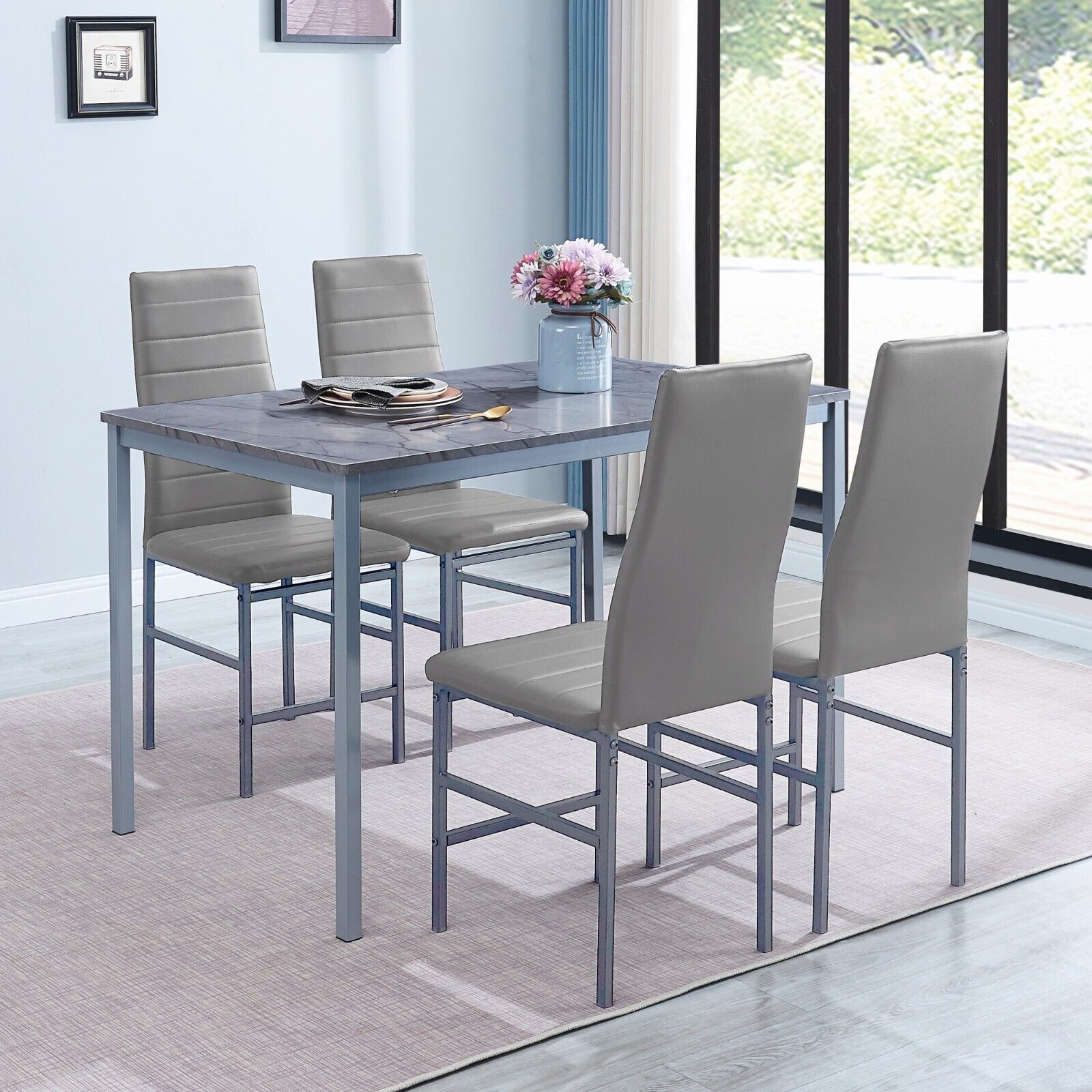 4x Grey Faux Leather Dining Chairs & Grey Marble MDF Top Dining Table Dining Set