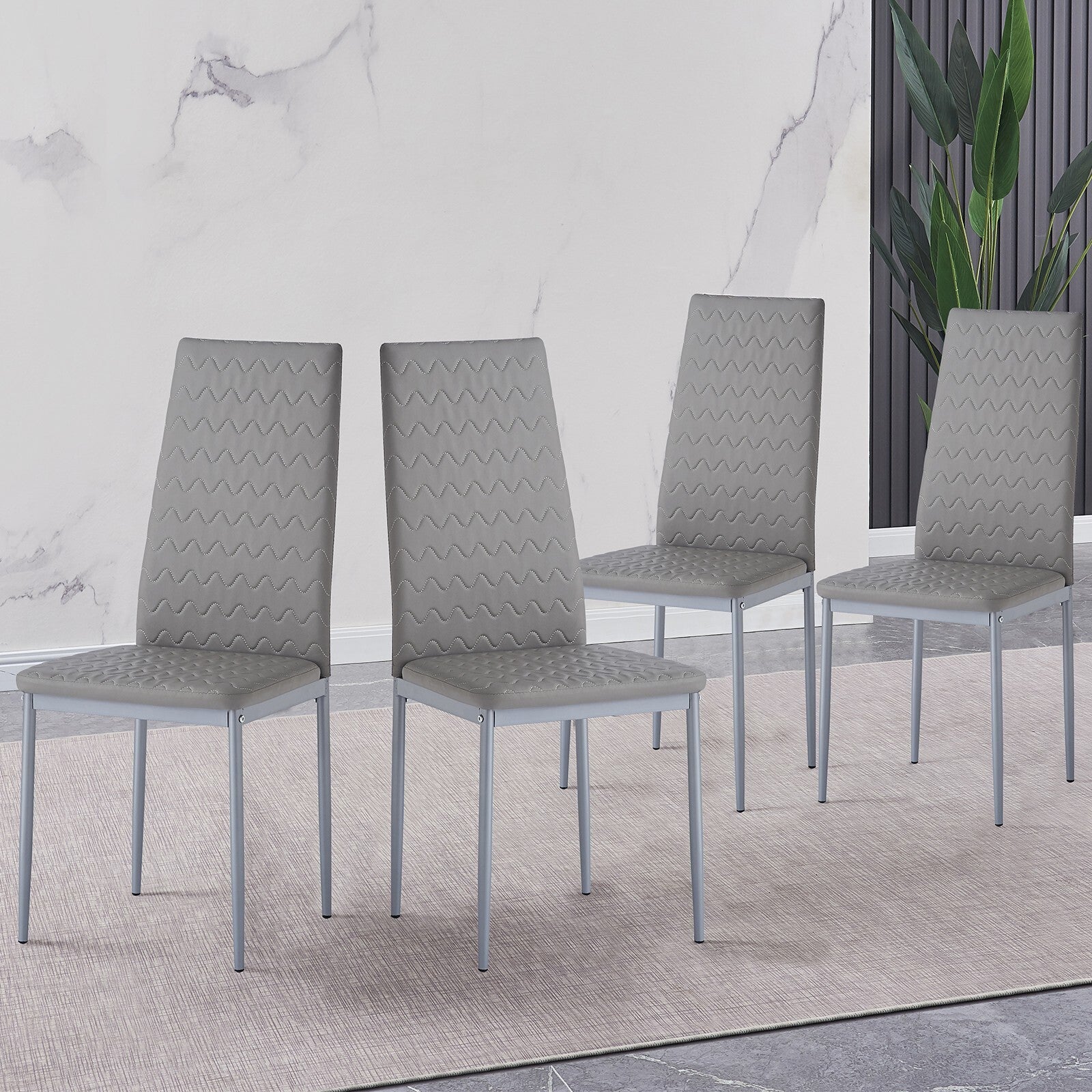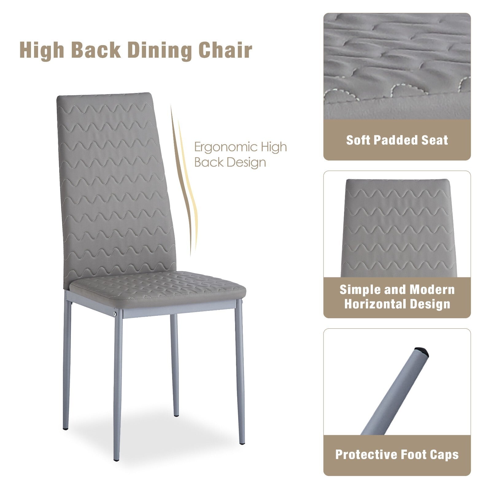 4x Grey Faux Leather Dining Chairs & Grey Tempered Glass Dining Table Dining Set