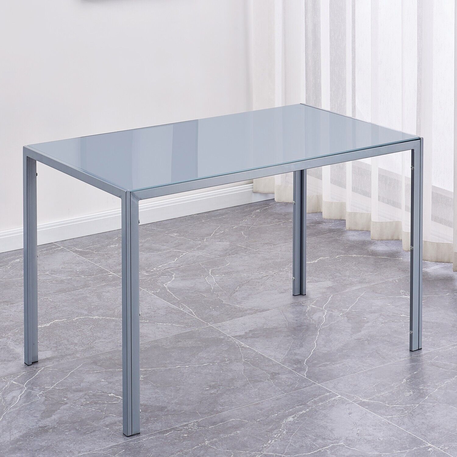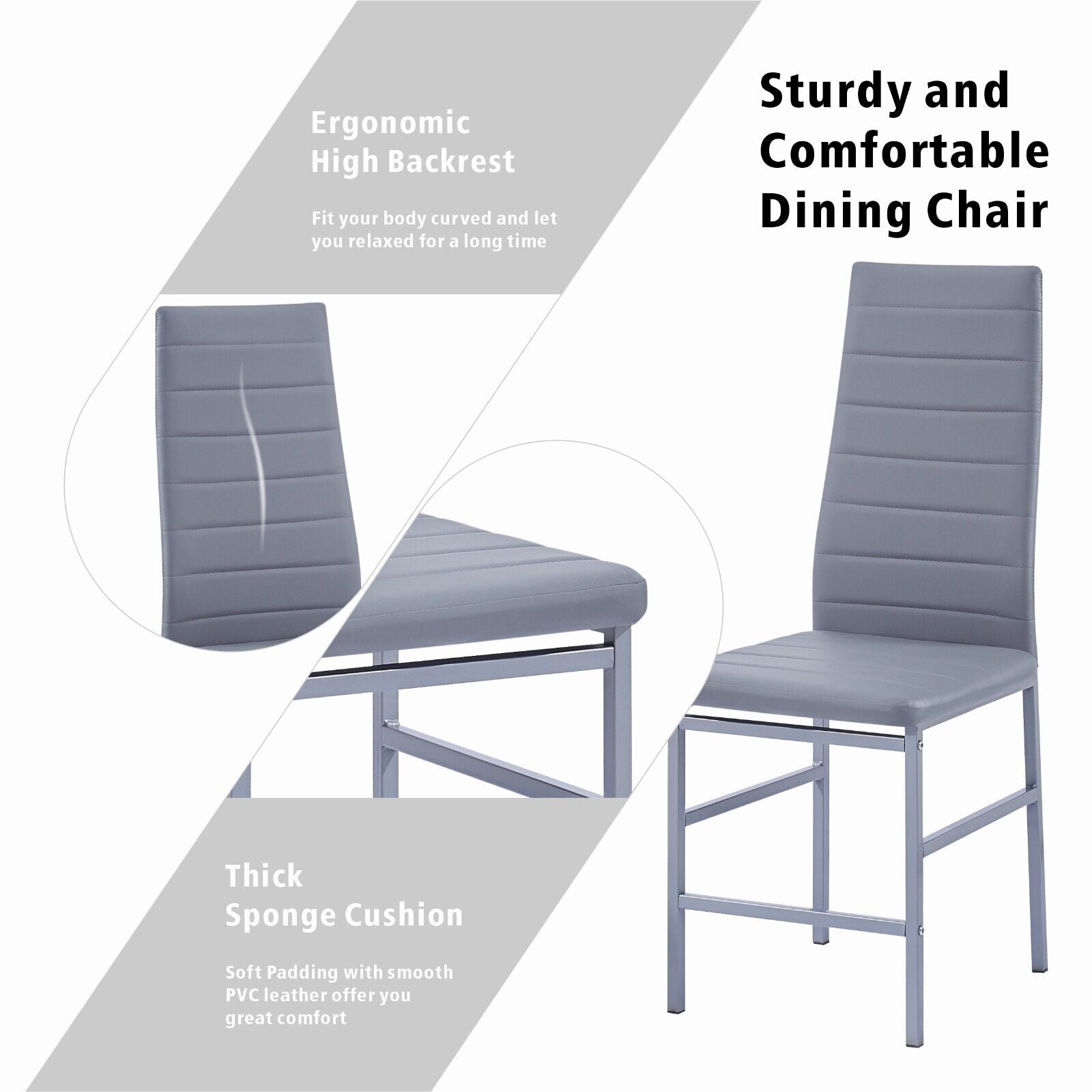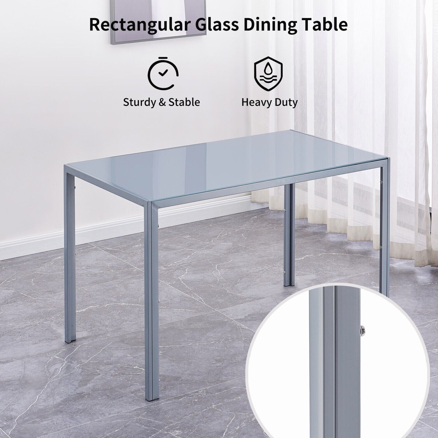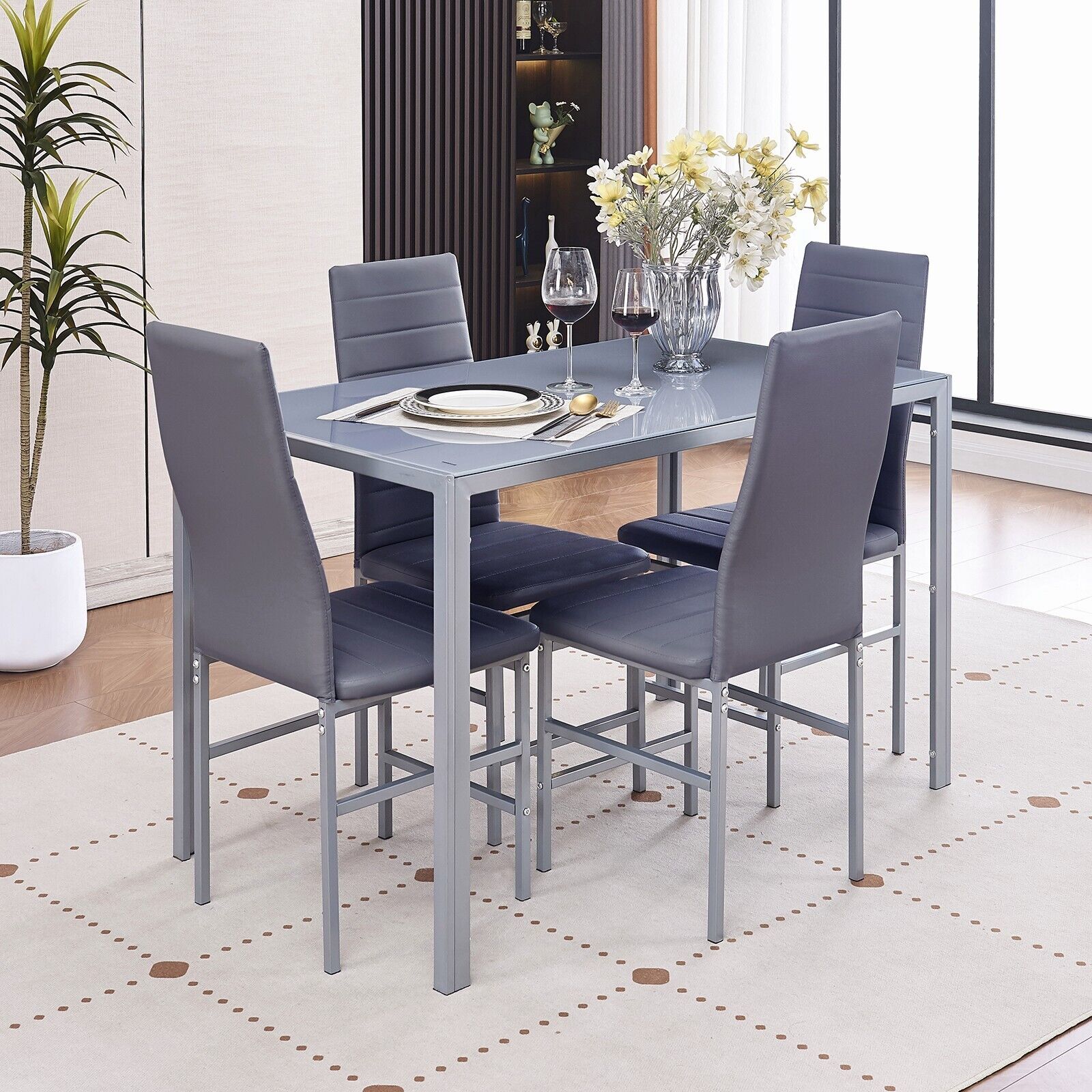 4x Grey Faux Leather Dining Chairs & Grey Tempered Glass Dining Table Dining Set