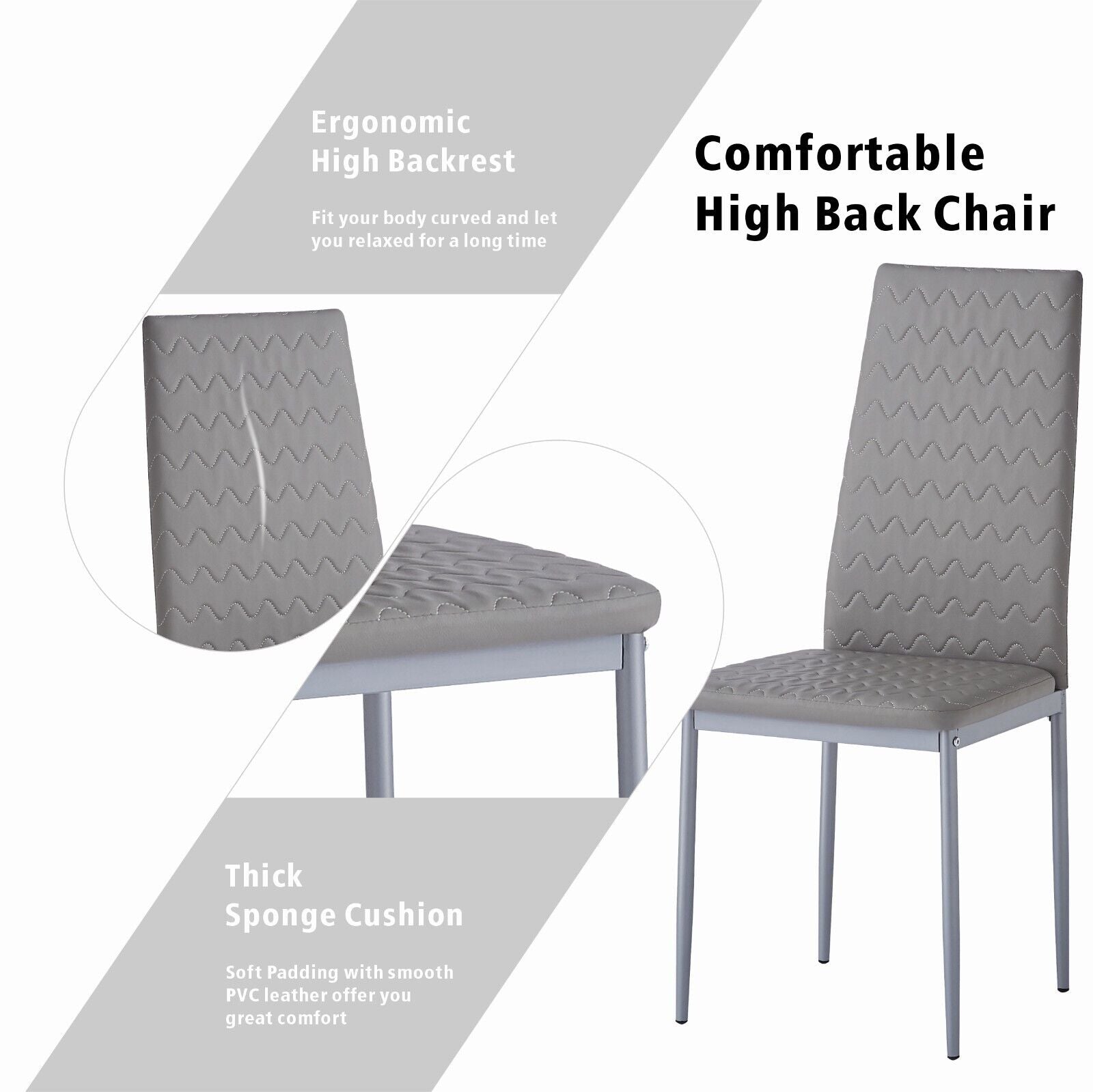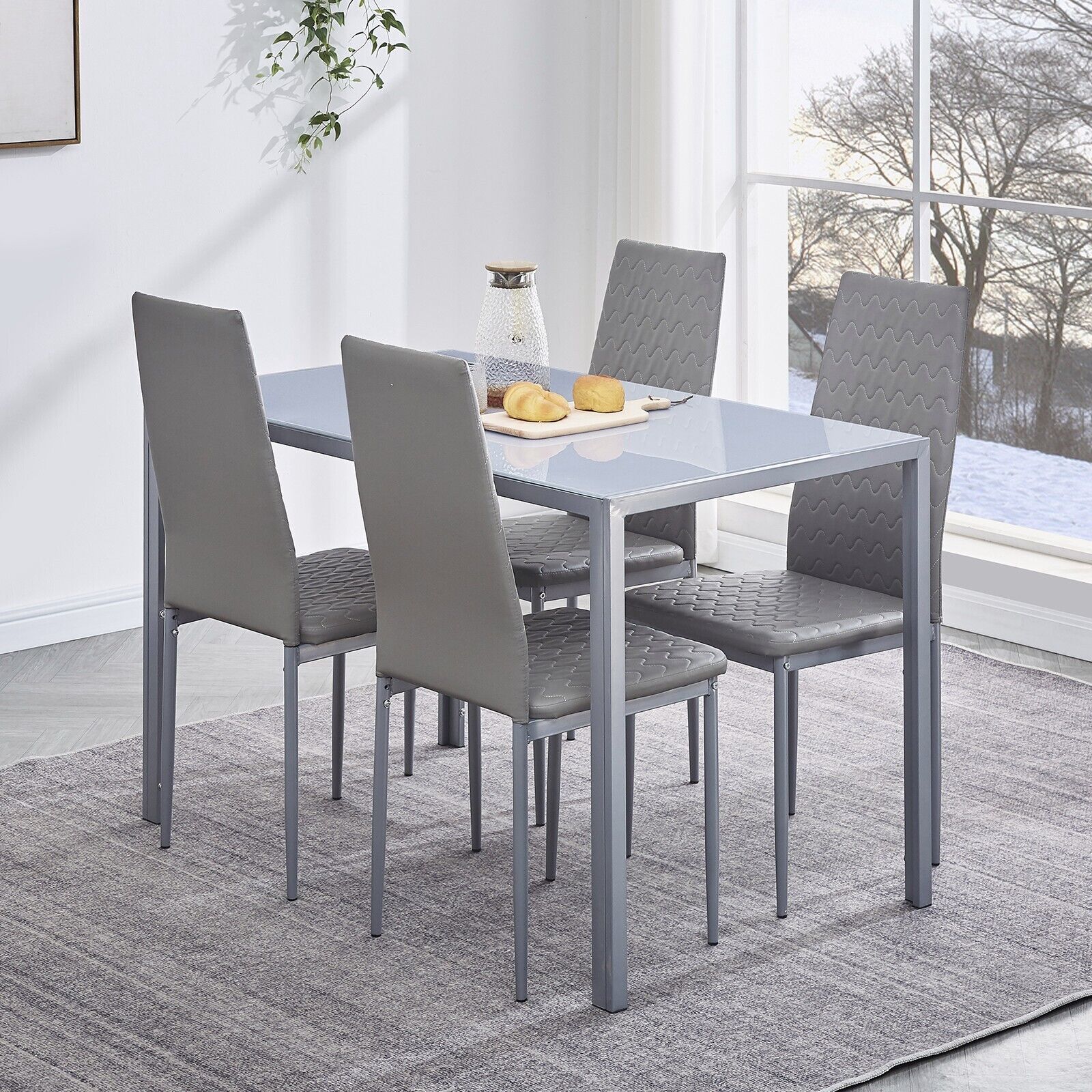 4x Grey Faux Leather Dining Chairs & Grey Tempered Glass Dining Table Dining Set
