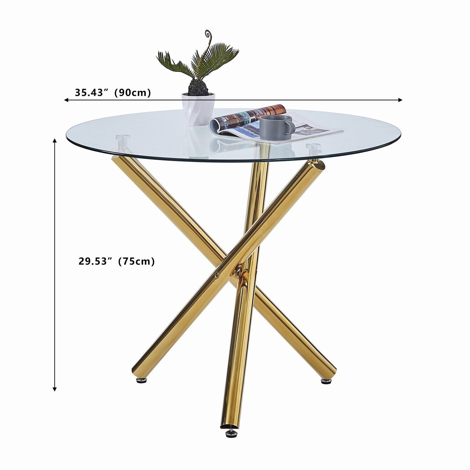 4x Grey Faux Leather Dining Chairs & Round Clear Glass Dining Table Golden Legs