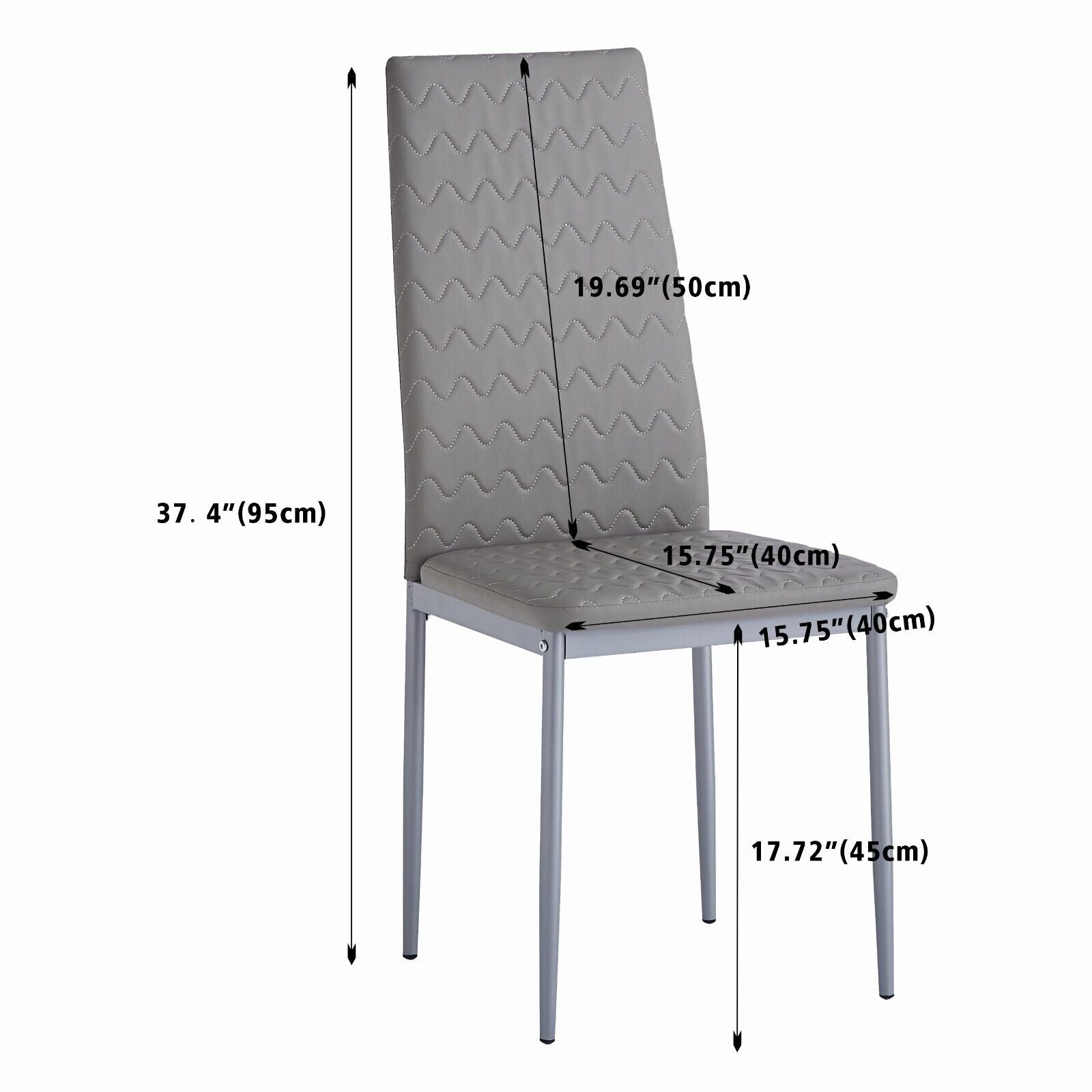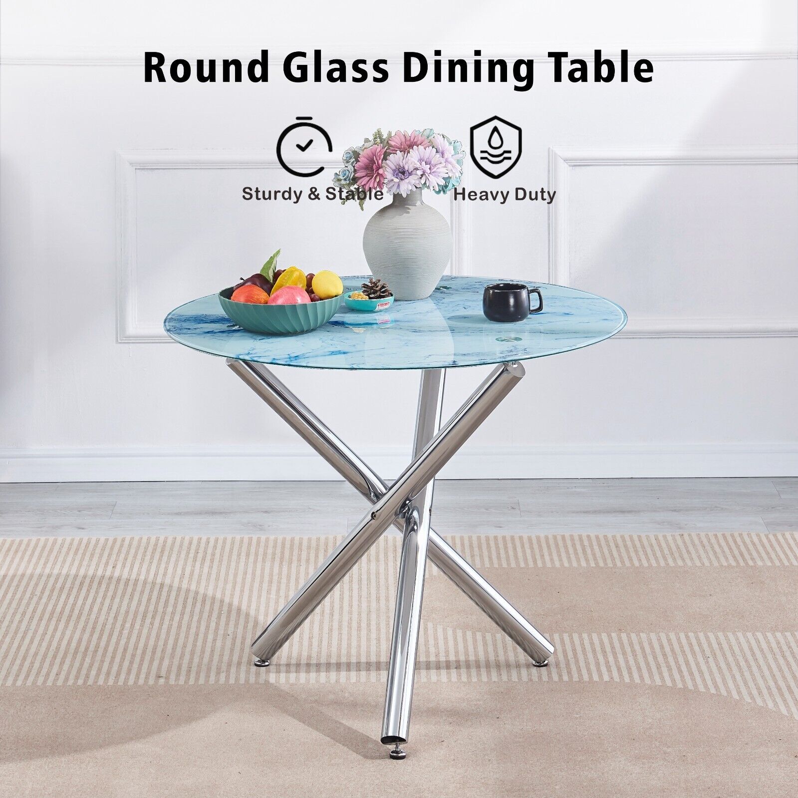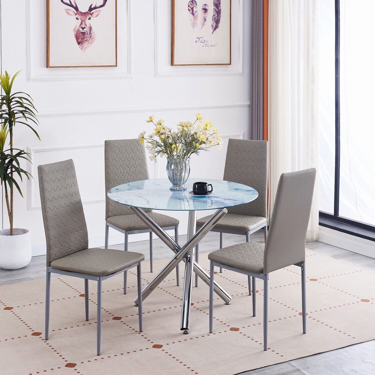 4x Grey Faux Leather Dining Chairs & Round Marble Glass Dining Table Silver Legs