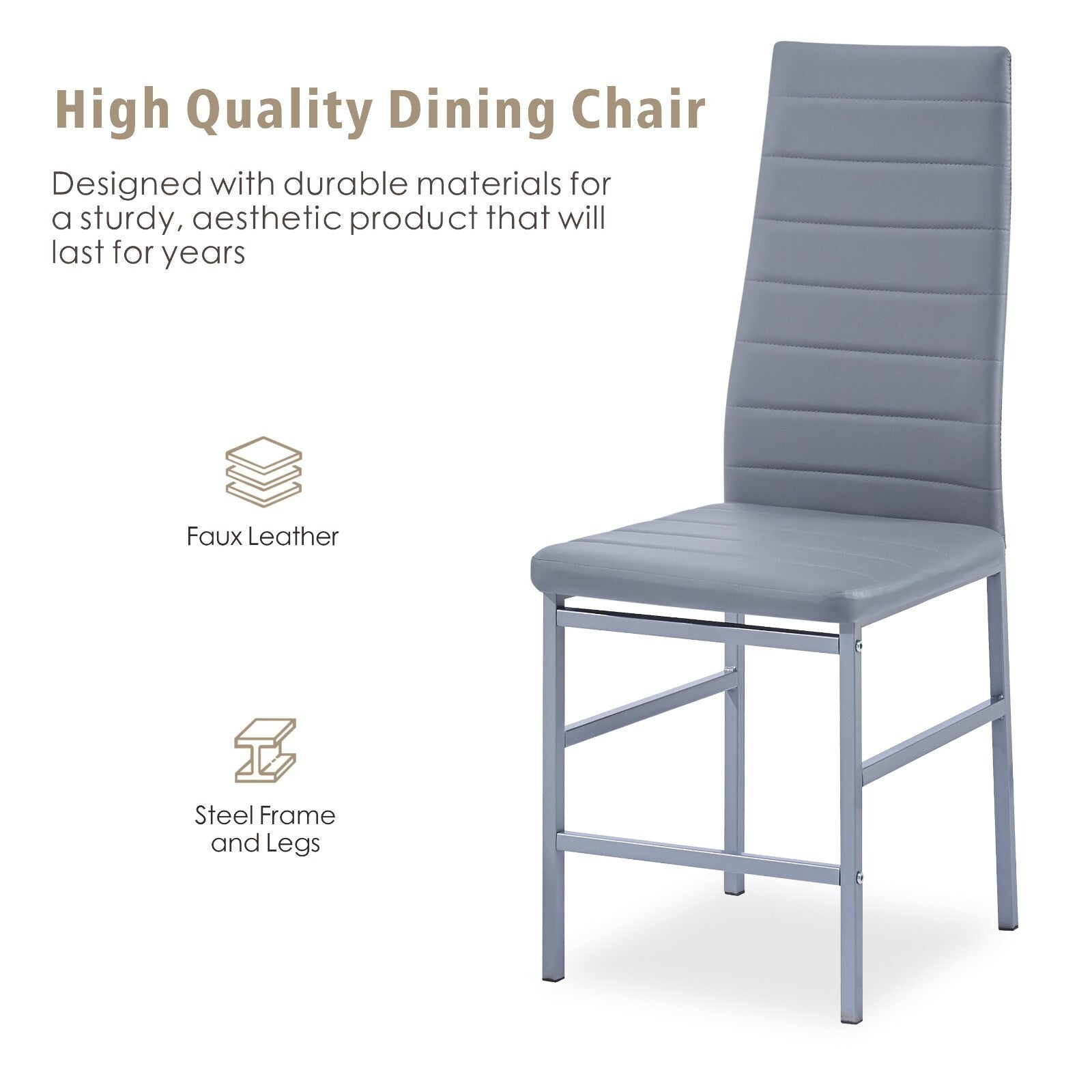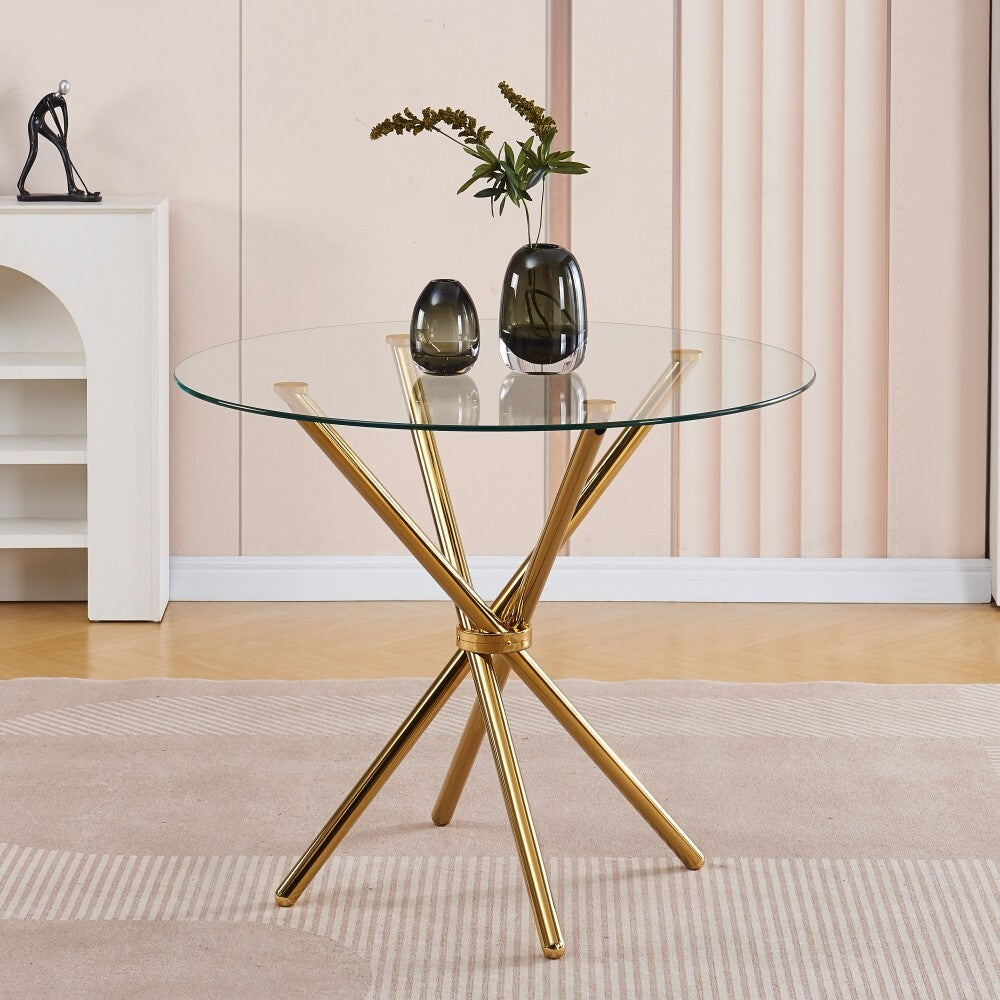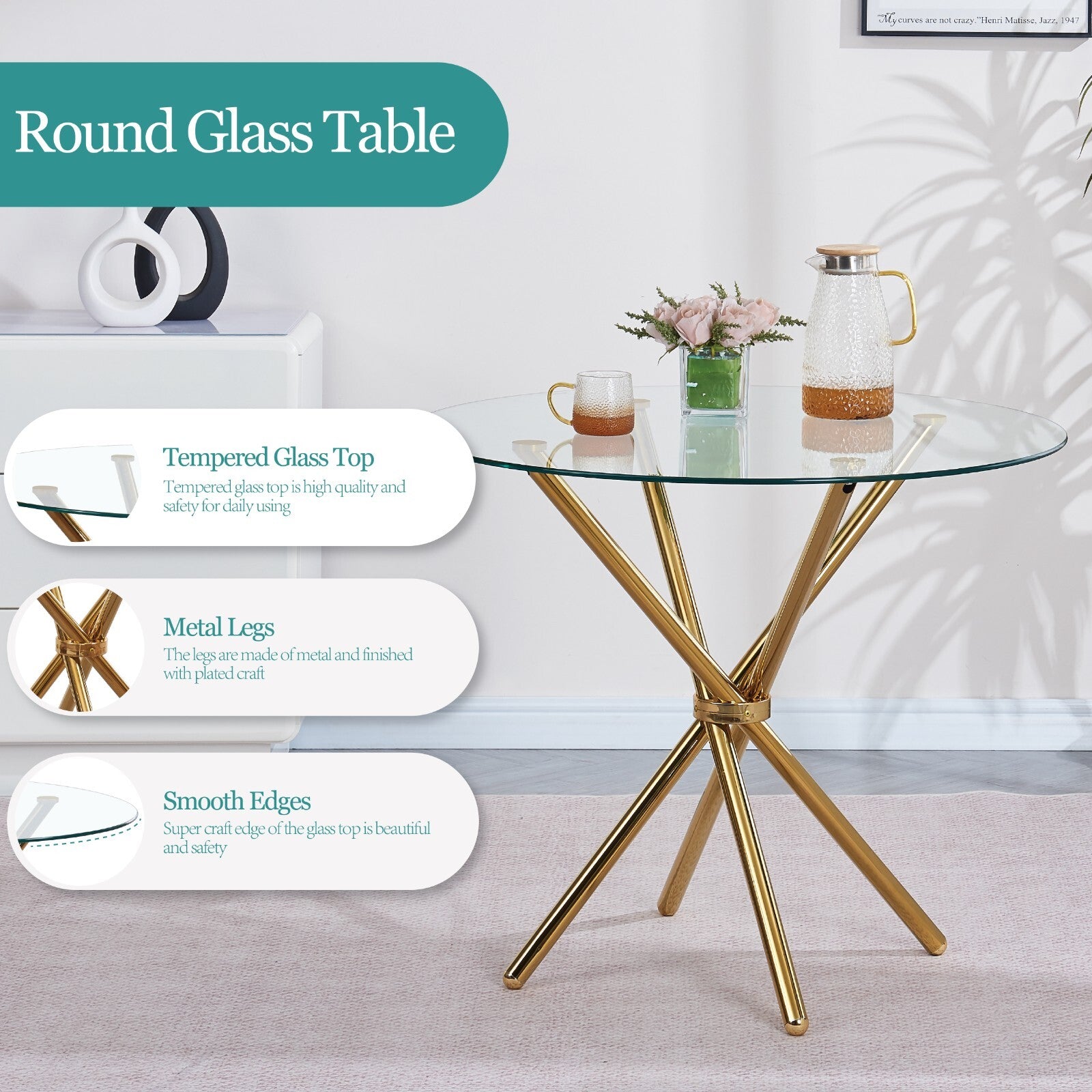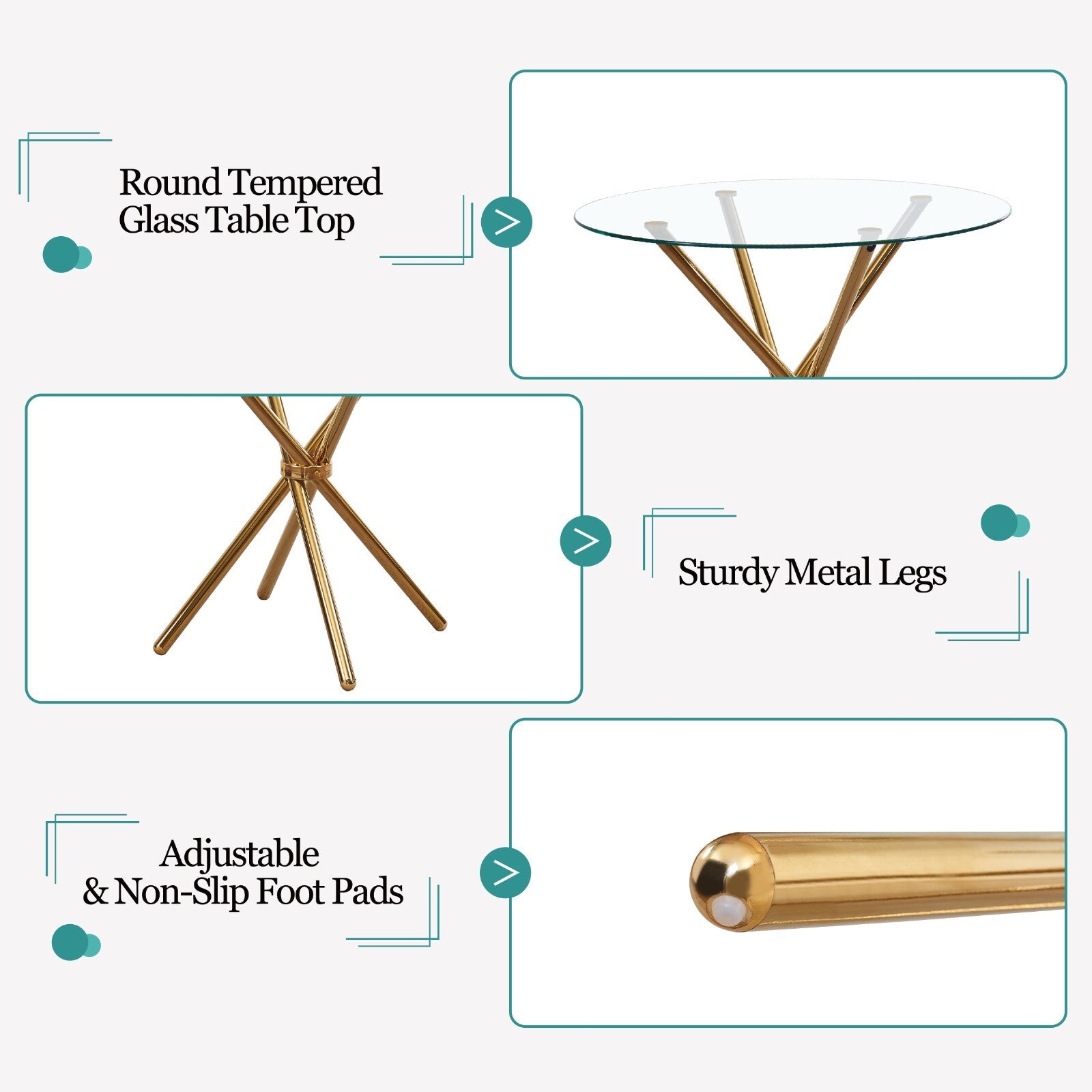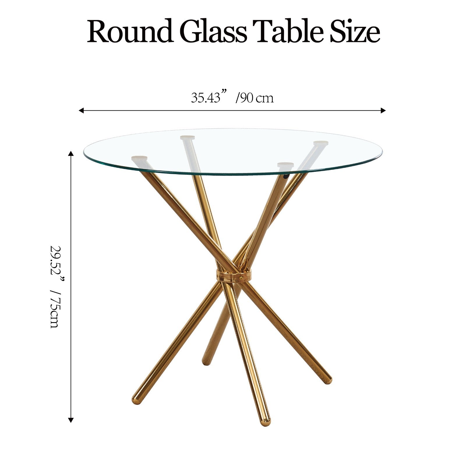 4x Grey Faux Leather Dining Chairs&Round Tempered Glass Golden Legs Dining Table