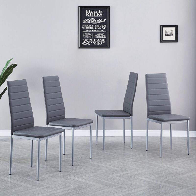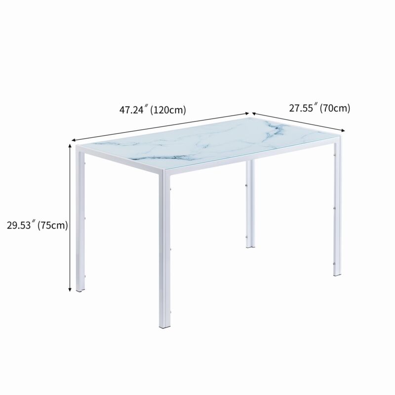 4x Grey Faux Leather Dining Chairs&White Marble Tempered Glass Dining Table Set