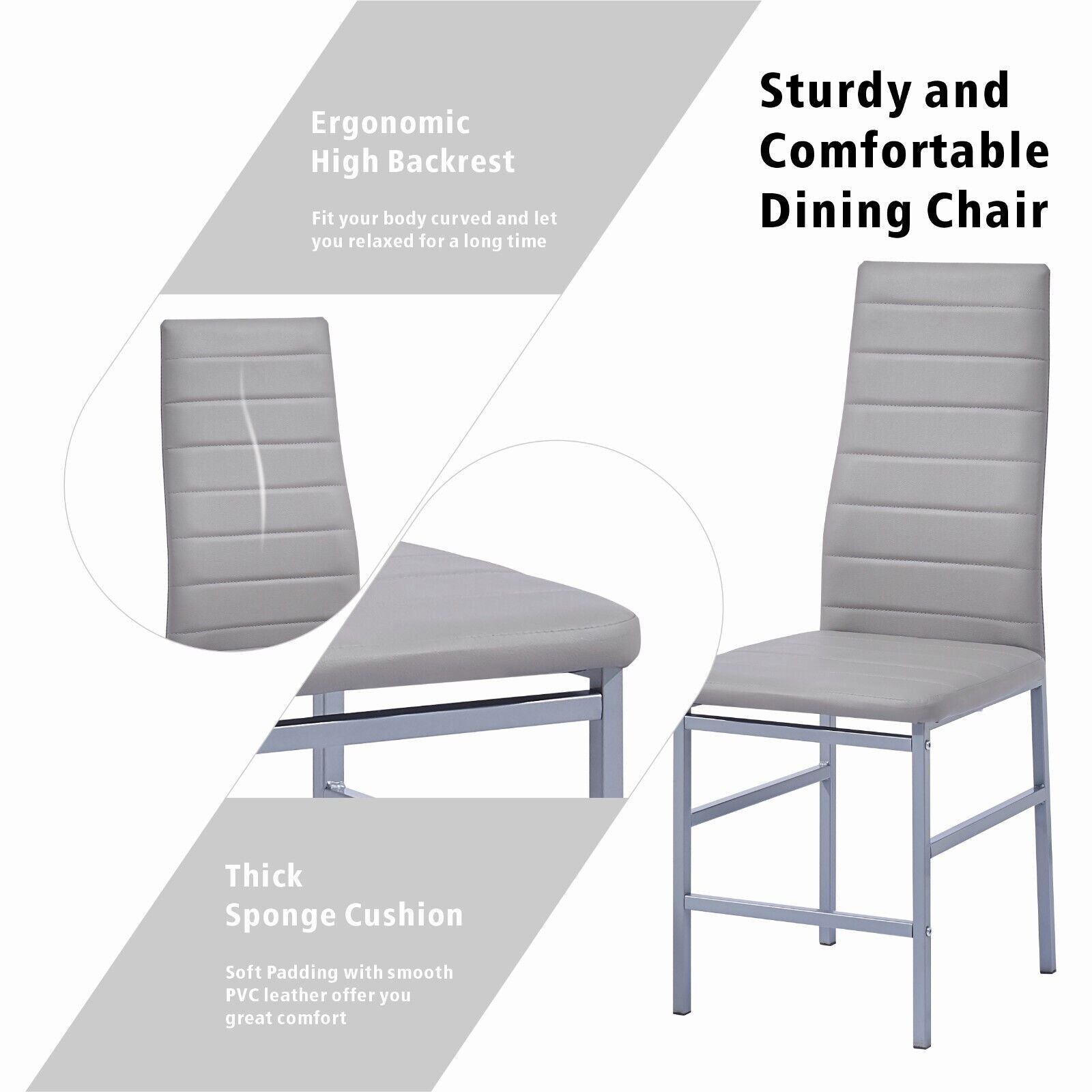 4x Grey Faux Leather Dining Chairs White Marble Tempered Glass Dining Table Set