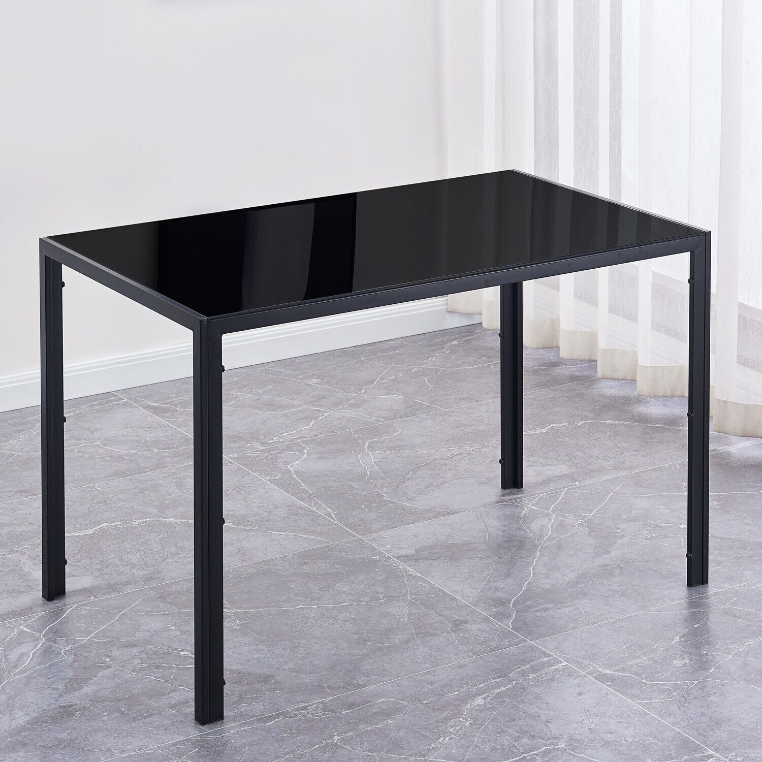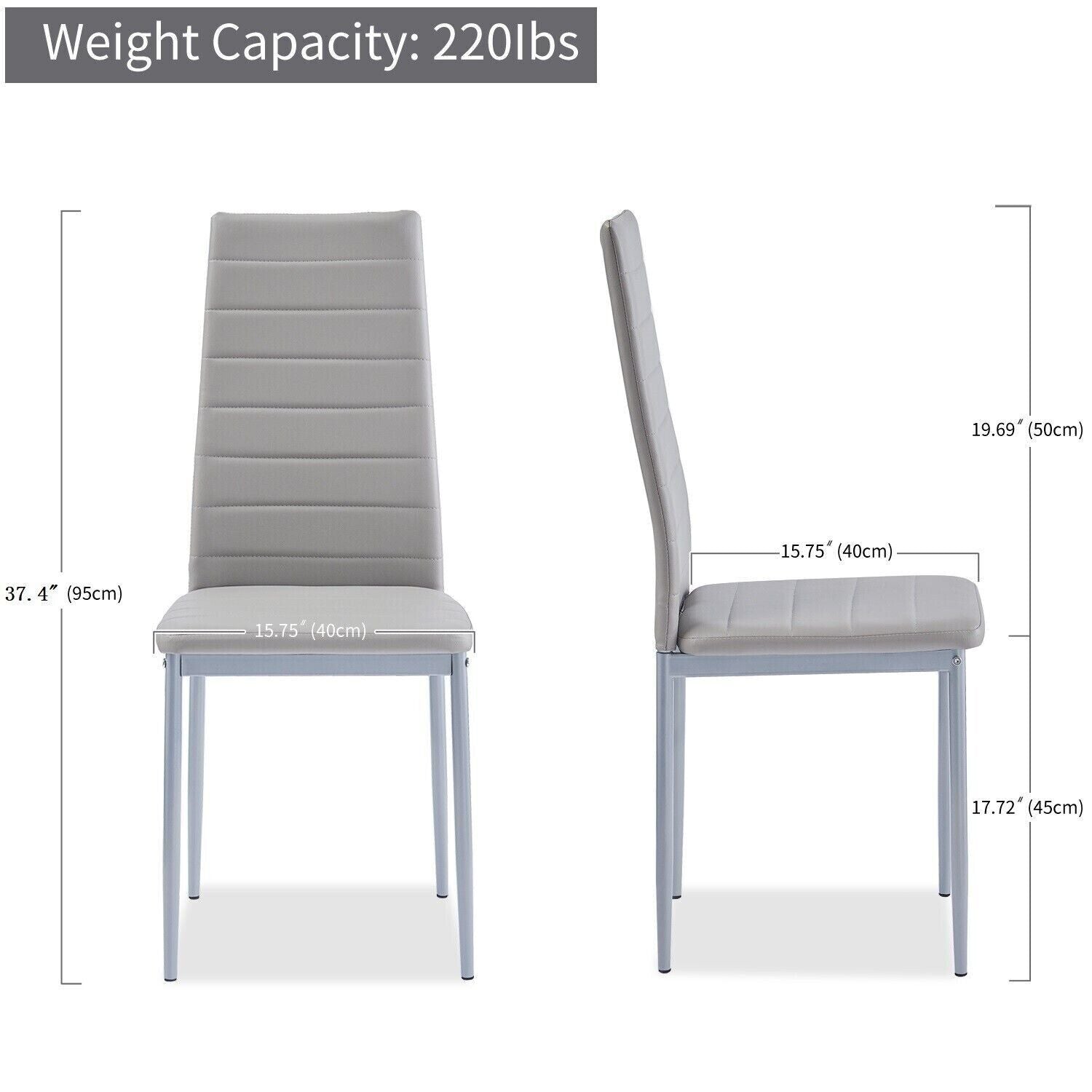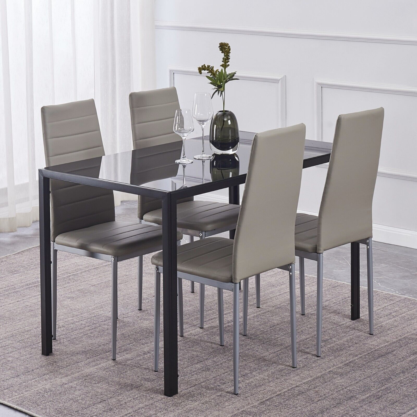4x Grey Faux Leather Padded Seat Dining Chairs&Black Tempered Glass Dining Table