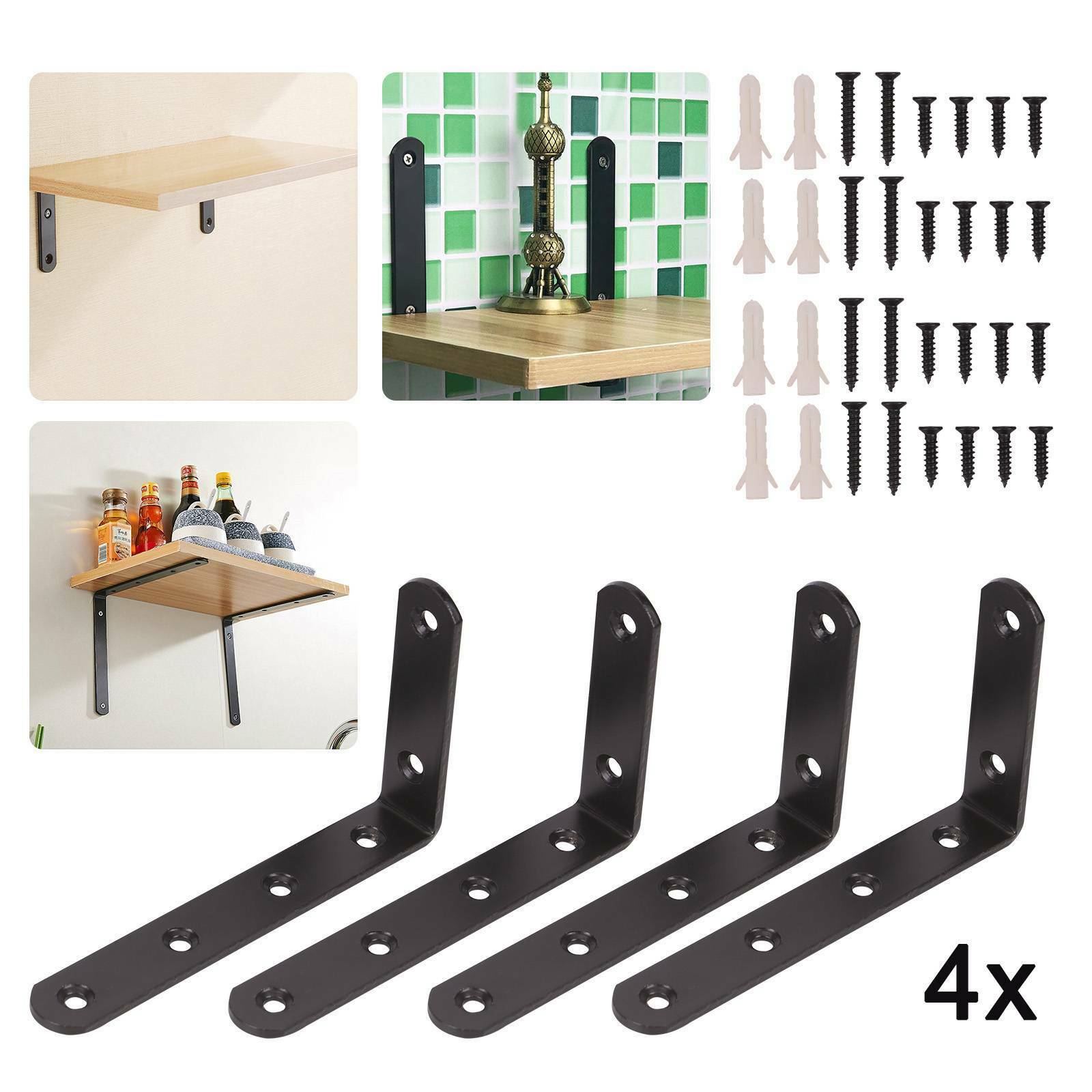 4X Heavy Duty Cast Iron Wall Mounted L Shaped Angle Shelf metal Bracket Supports