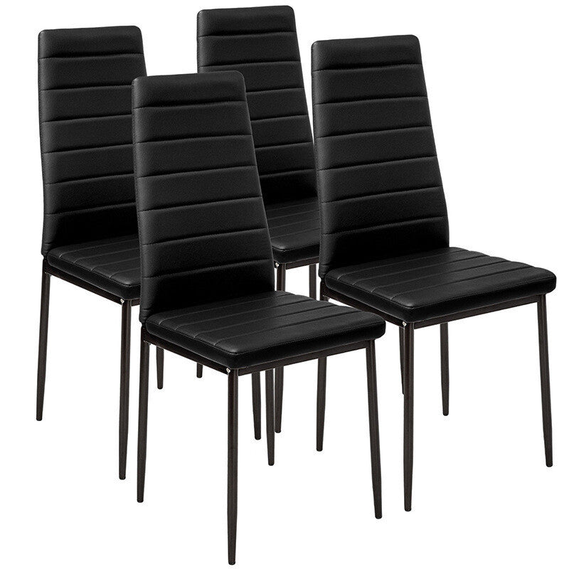 4x Modern Dining Room Faux Leather Chair Black Padded Seat Kitchen Set High Back