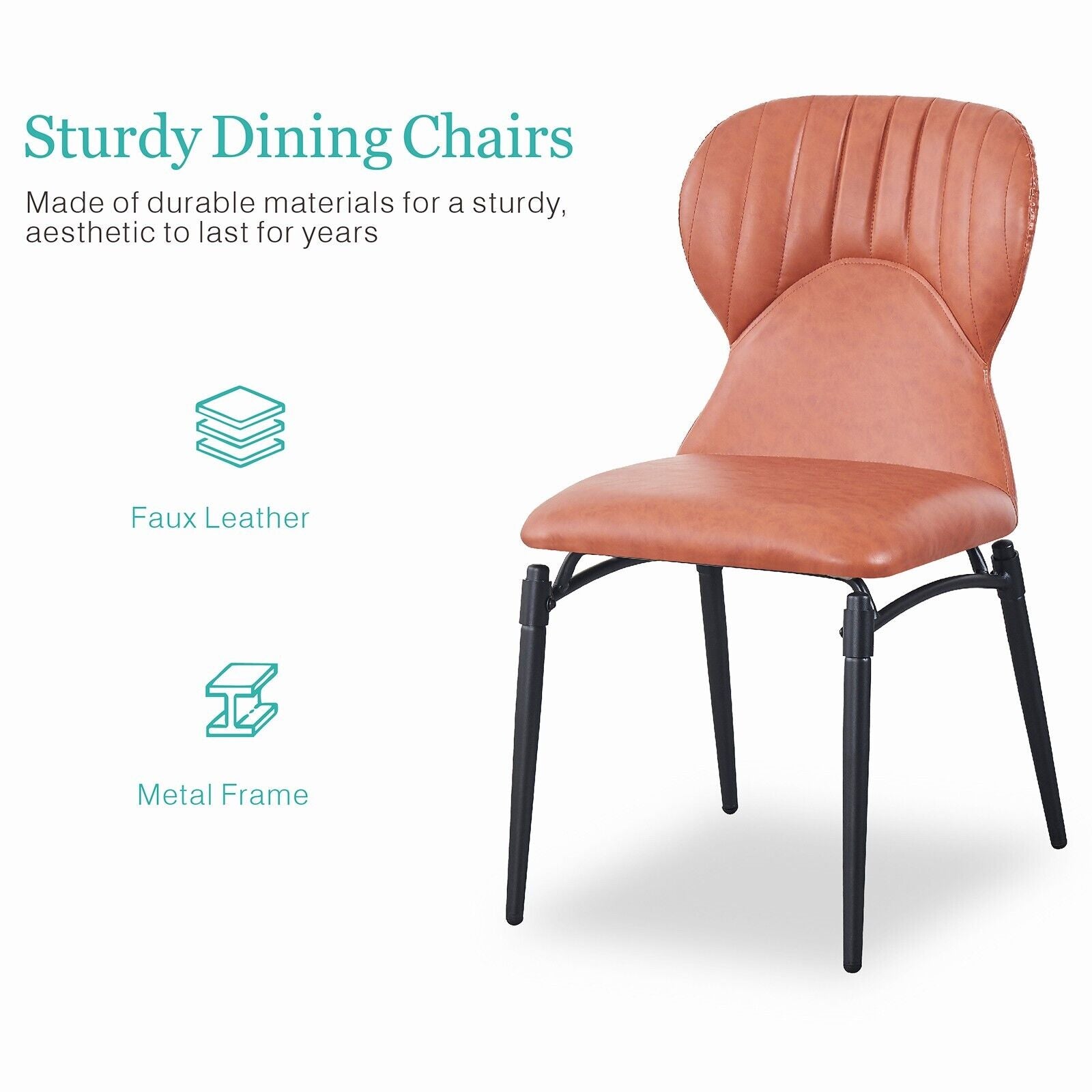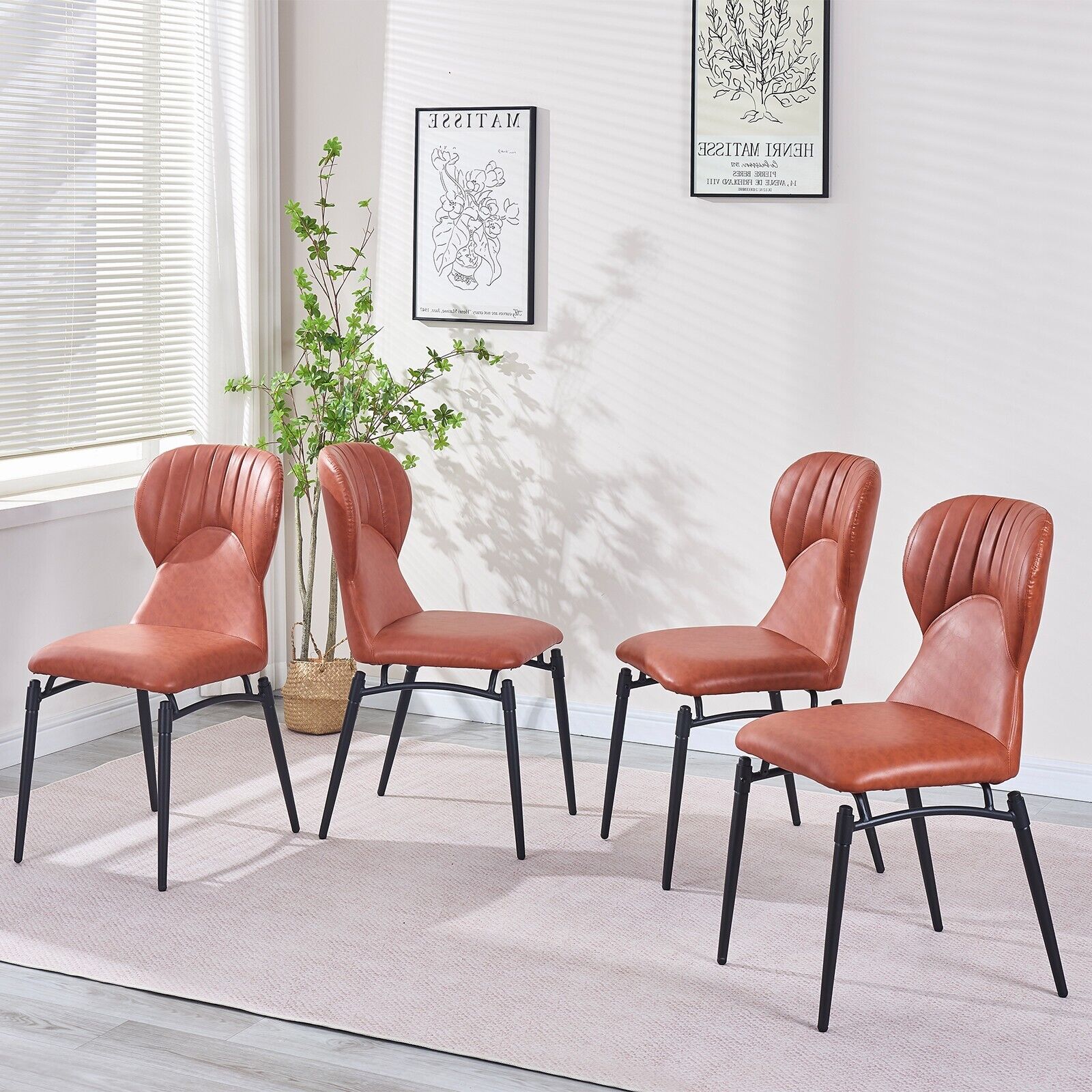 4x Orange PU Leather Padded Dining Chairs Black Metal Frame Dining Room Kitchen