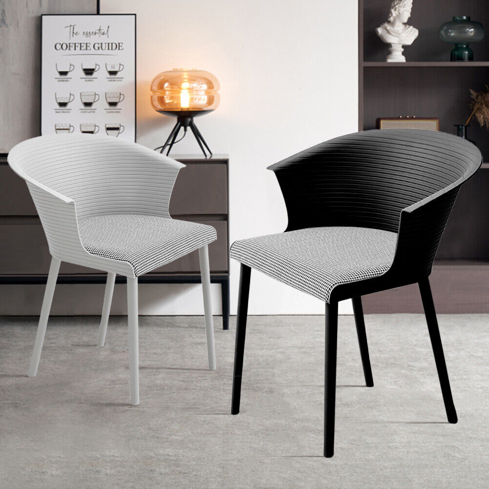 4x Plastic Chairs with Padded Seat for Lounge Dining Living Rooom Kitchen Office