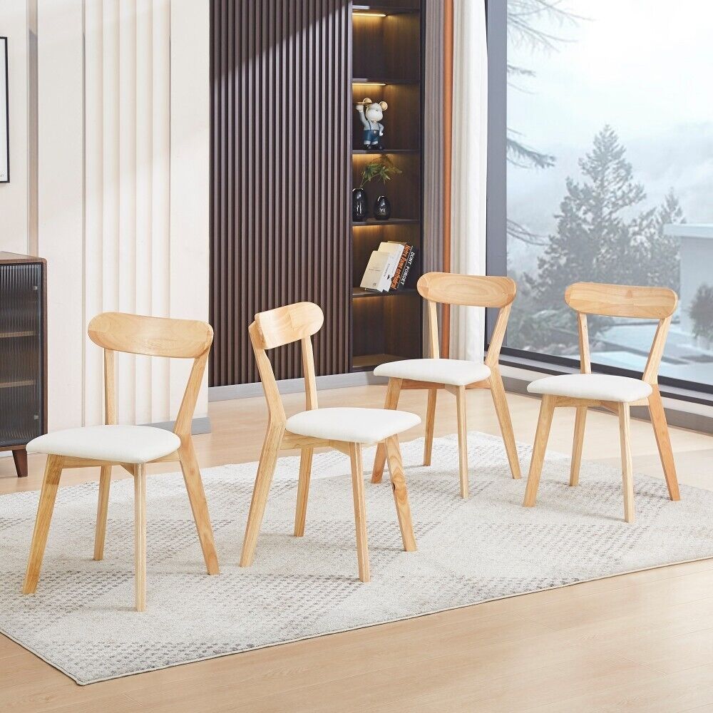 4x Solid Wood Padded Seat Dining Chairs Practical Kitchen Chairs Curved Backrest
