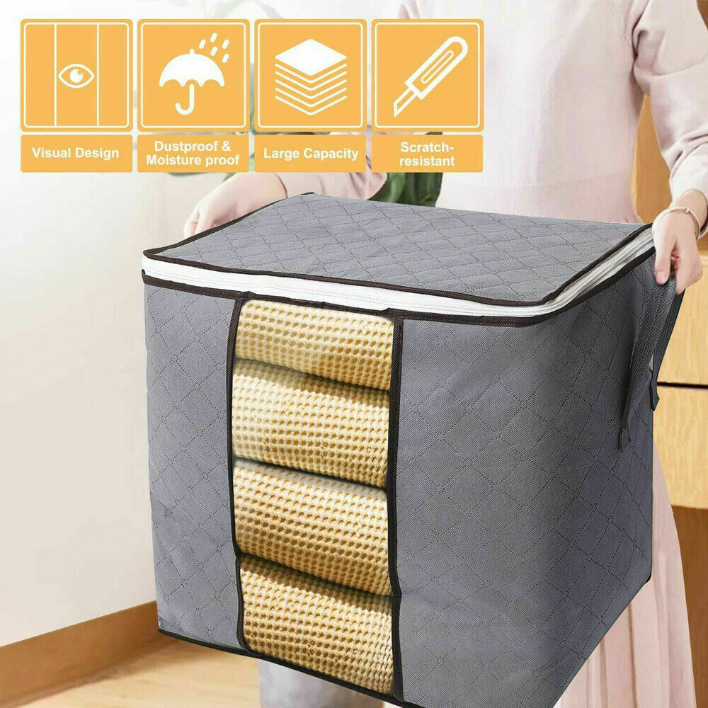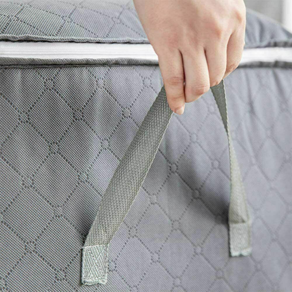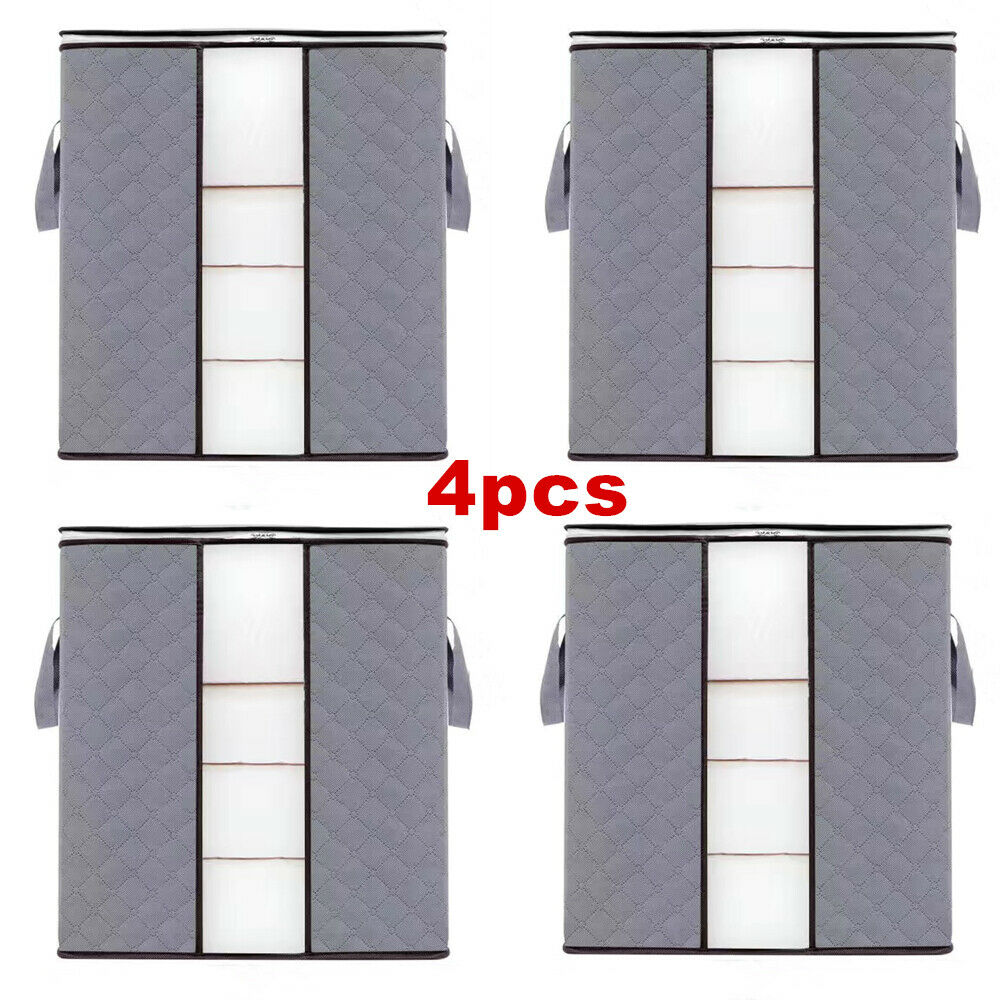 4x Underbed Clothes Grey Storage Bags Ziped Organizer Wardrobe Cube Closet Boxes
