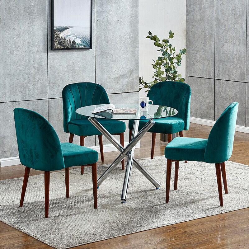 4x Velvet Dining Chairs Dinning Room Accent Side Chairs w/ Metal Leg Dark Green
