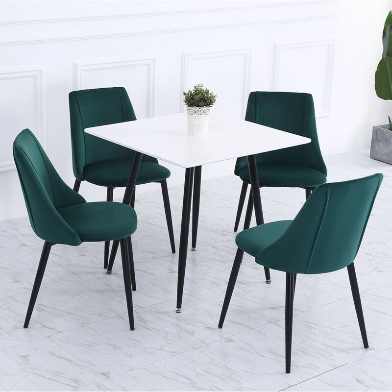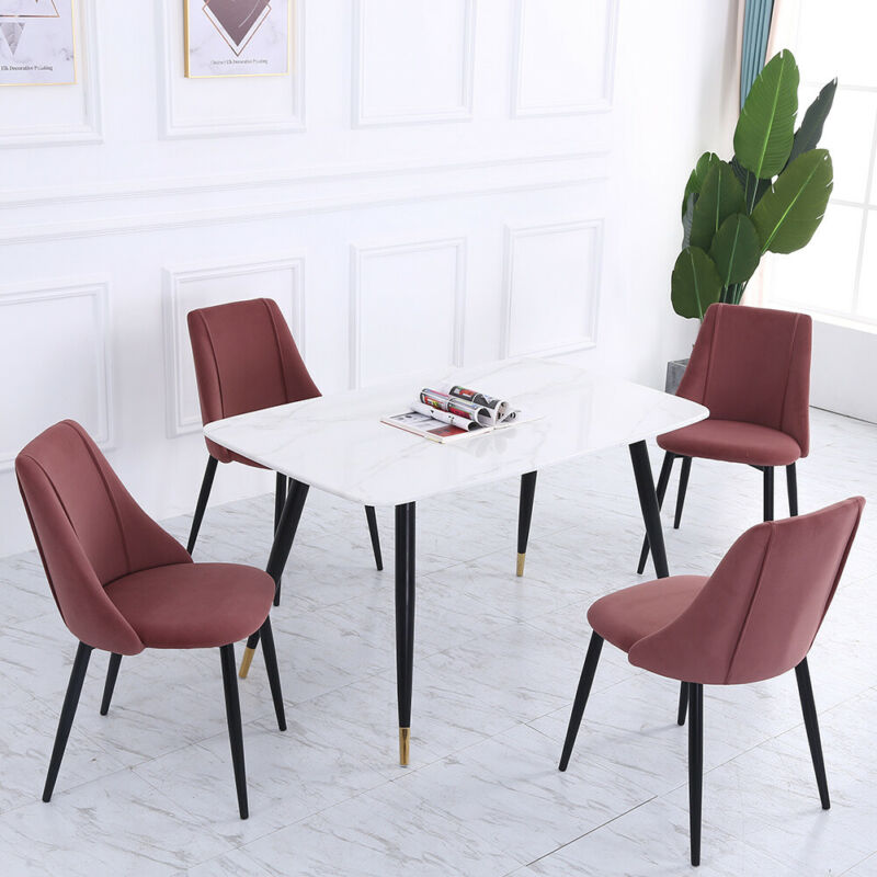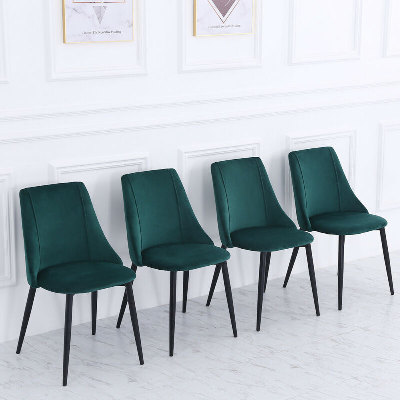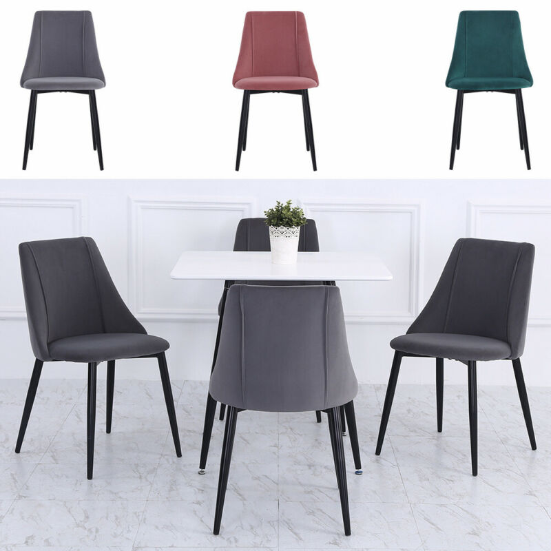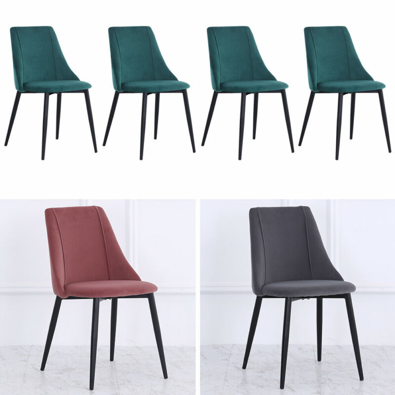 4x Velvet Dining Chairs Padded Seat Retro Metal Legs Office Kitchen Lounge Chair