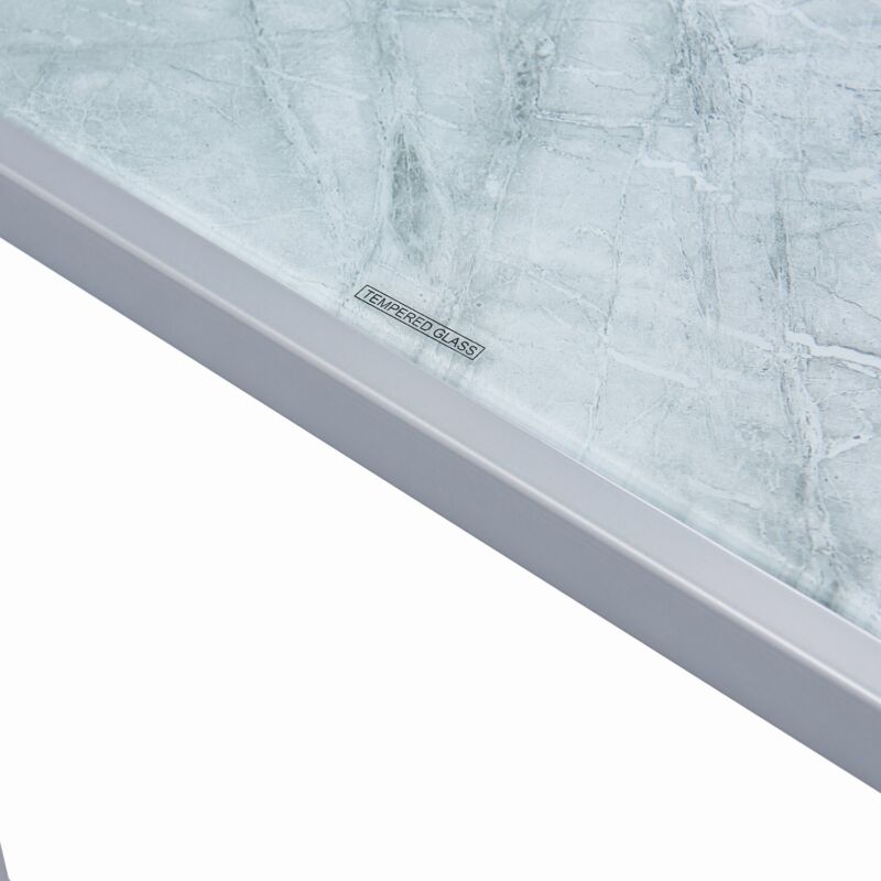 4x White Faux Leather Dining Chairs&Grey Marble Tempered Glass Dining Table Set