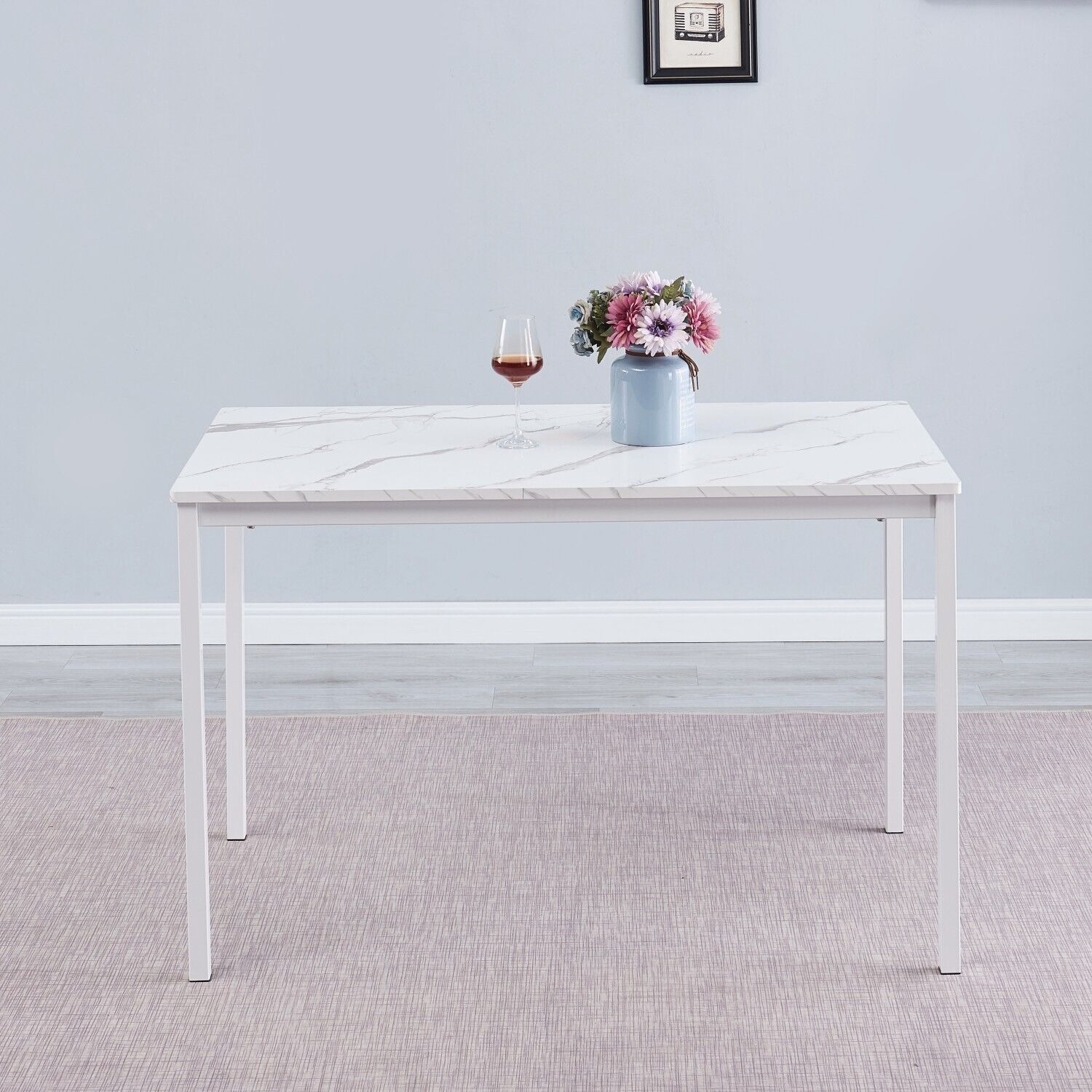 4x White Faux Leather Stripe Dining Chairs&White Marble MDF Top Dining Table Set
