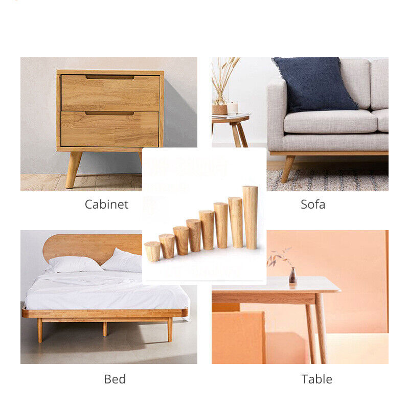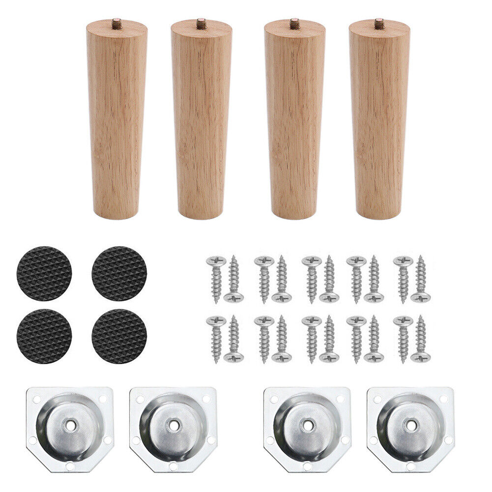 4x Wooden Furniture Round Tapered Feet Legs For Bed Stools Sofa Chair Cabinet UK