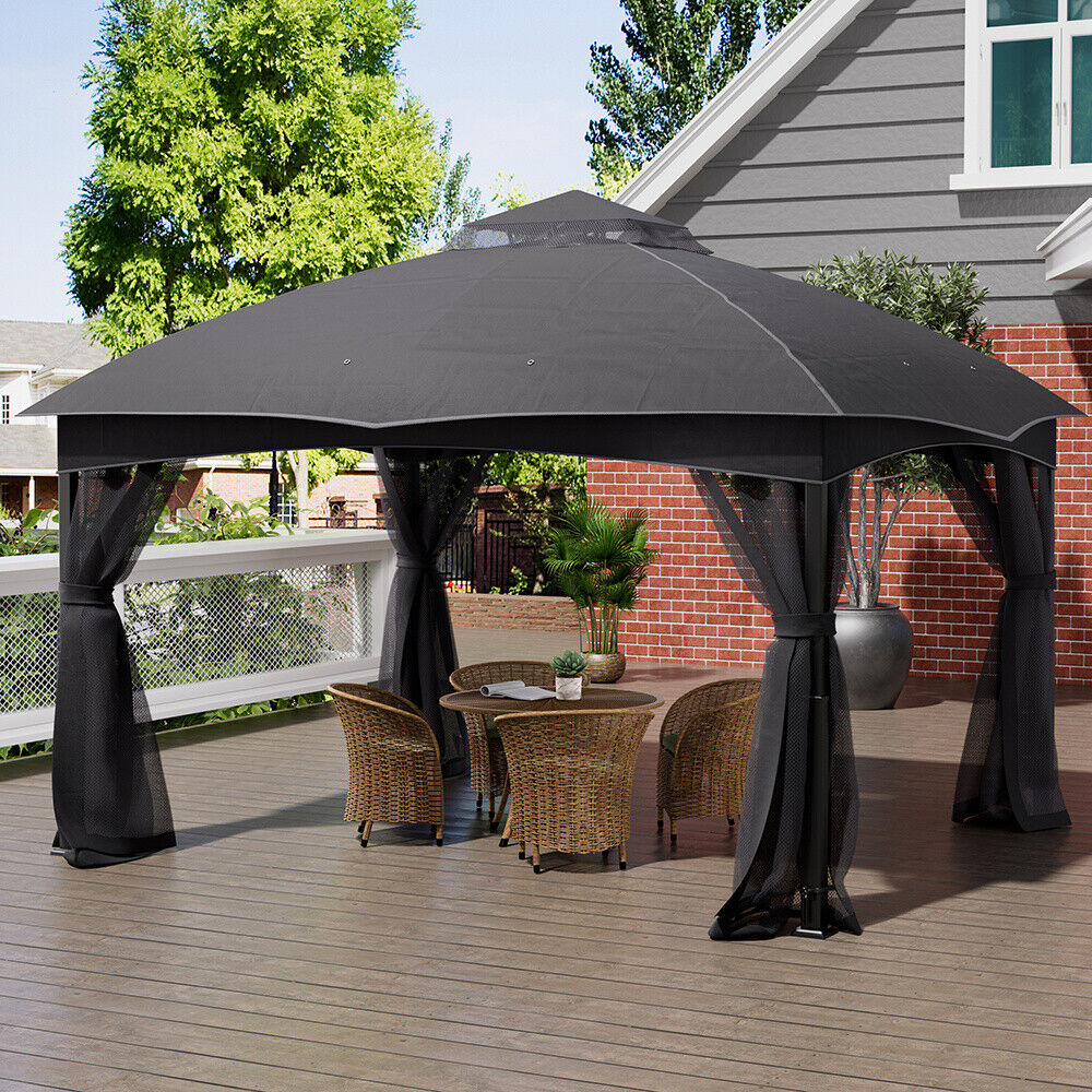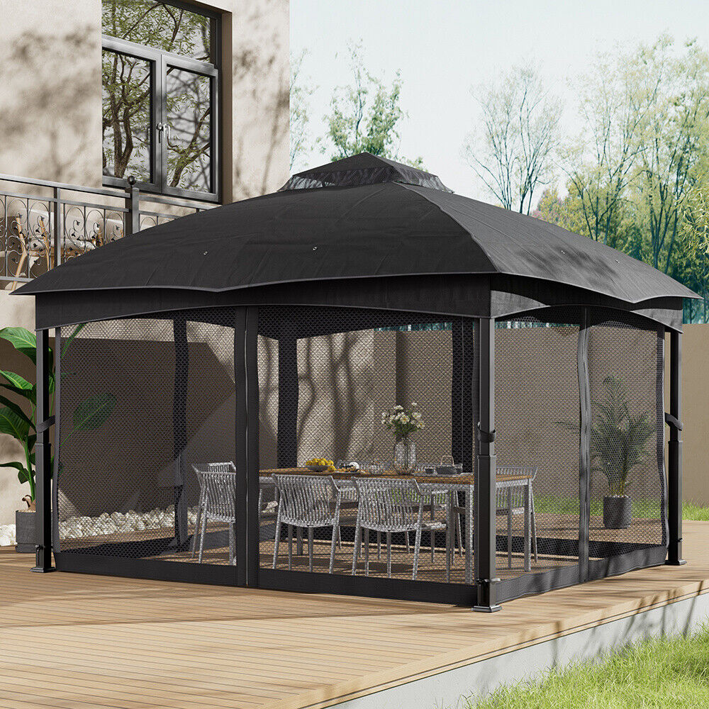 4x3.25m Metal Garden Gazebo Steel Frame Pergola Outdoor Sun Shade Shelter Canopy