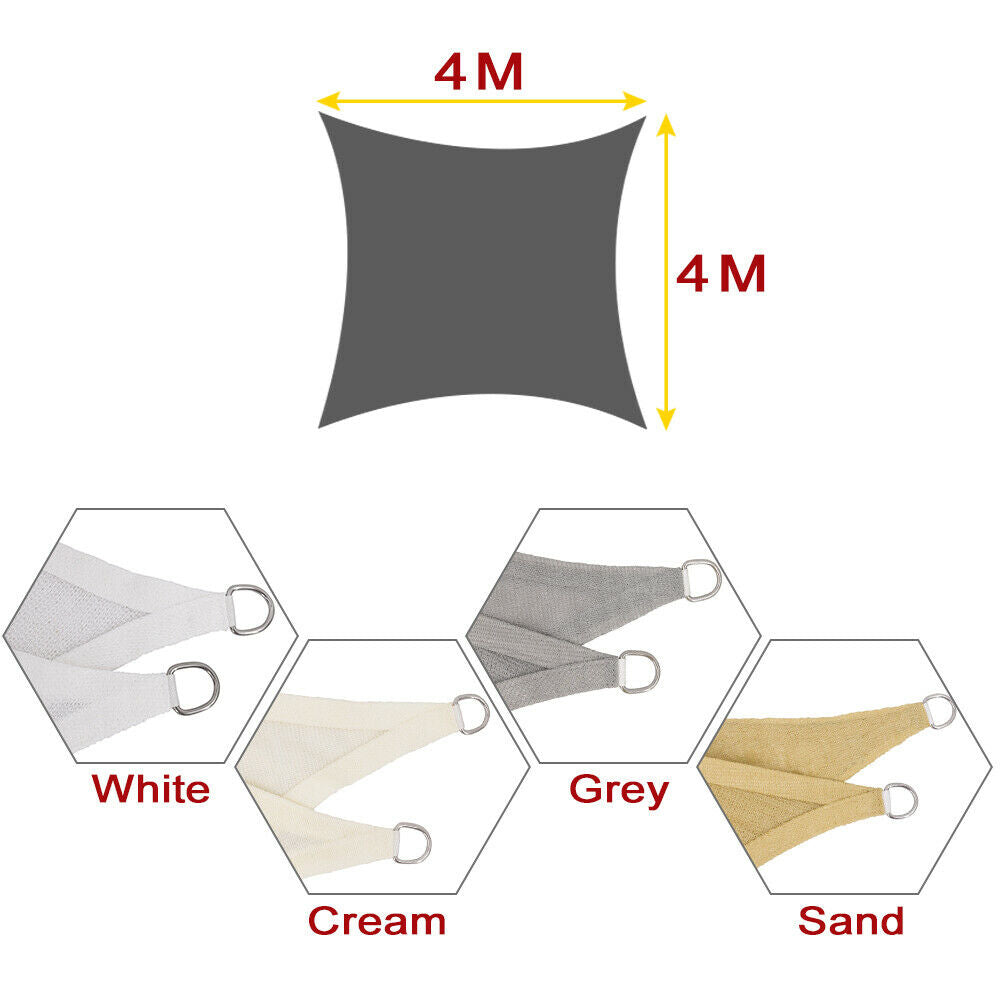 4x4M Outdoor Sun Shade Sail HDPE Patio Sunscreen Awning Canopy 80-85% UV Block