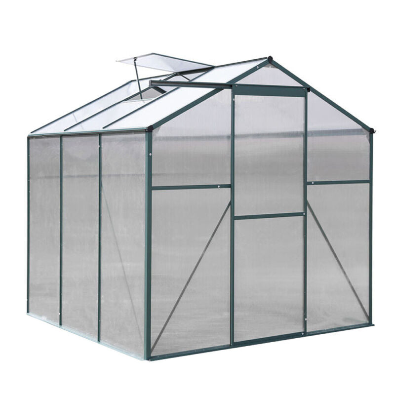 4x6/6x6/8x6/10x6FT Greenhouse Polycarb Panel Aluminium Frame Slid Door + Base