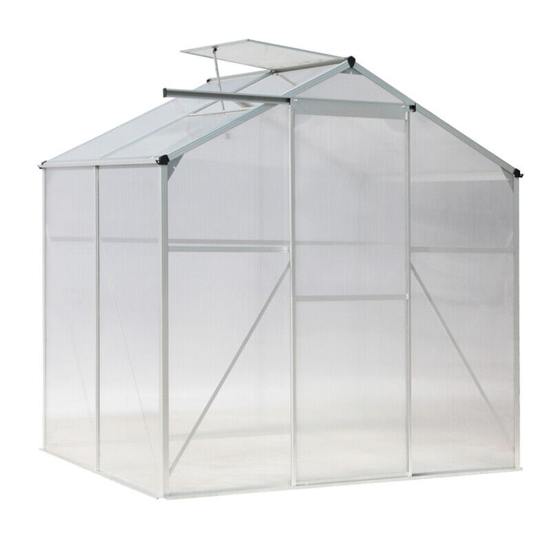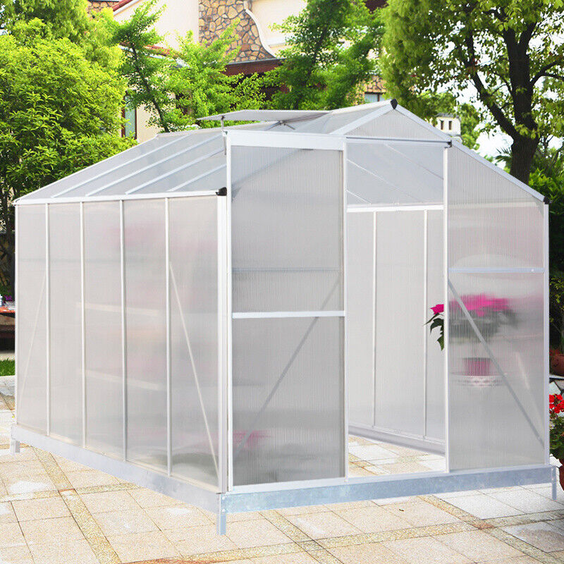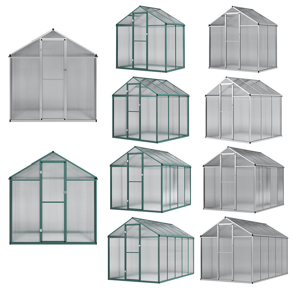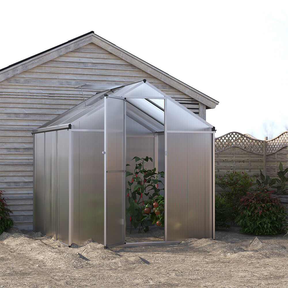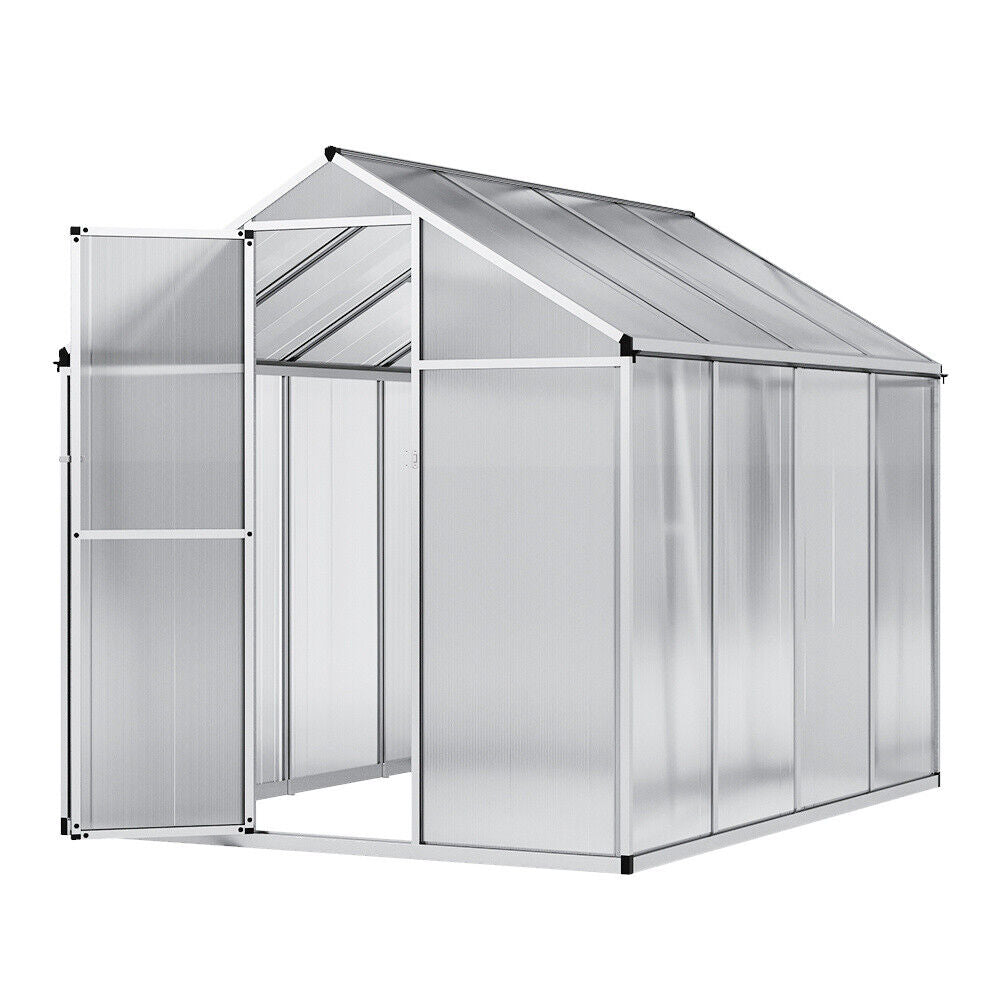 4x6/6x6/8x6/10x6FT Walk-In Greenhouse Aluminium Frame / Polycarb Panel Silver