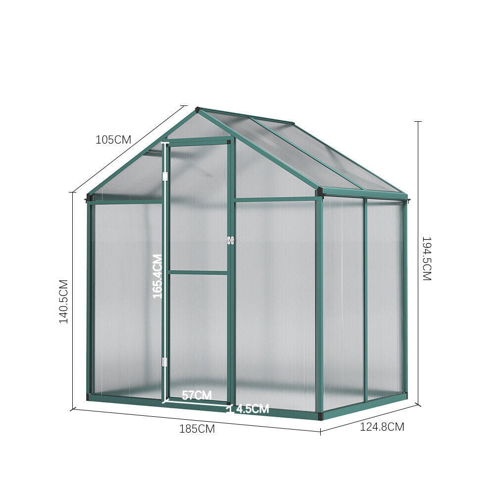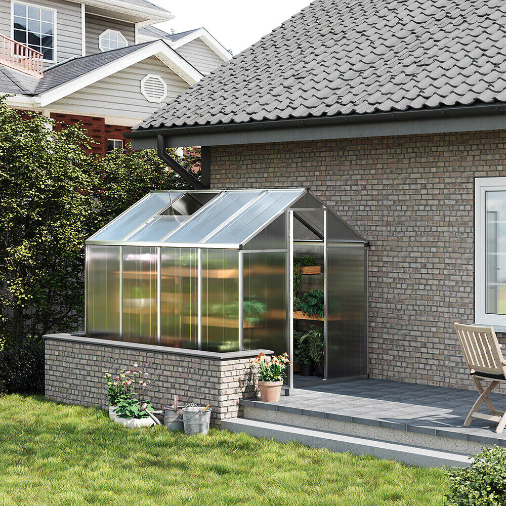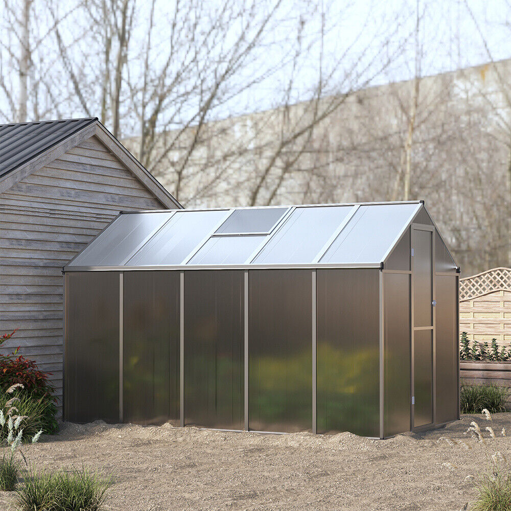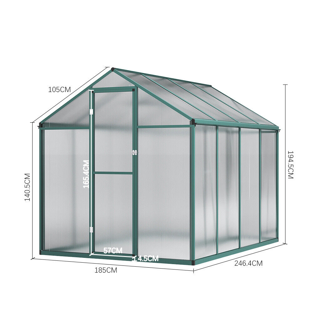 4x6/6x6/8x6/10x6FT Walk-In Greenhouse Aluminium Frame / Polycarb Panel Silver