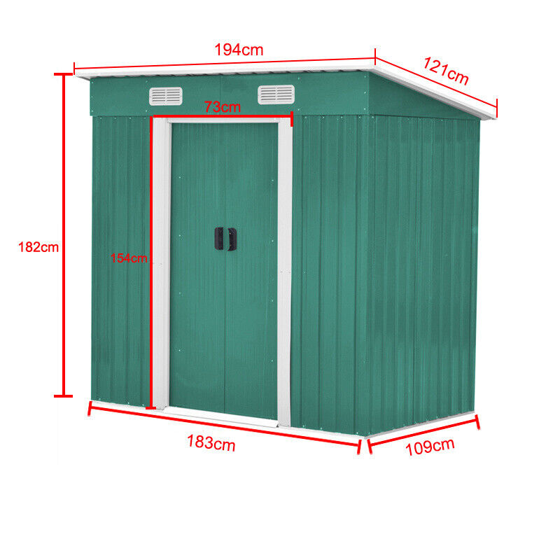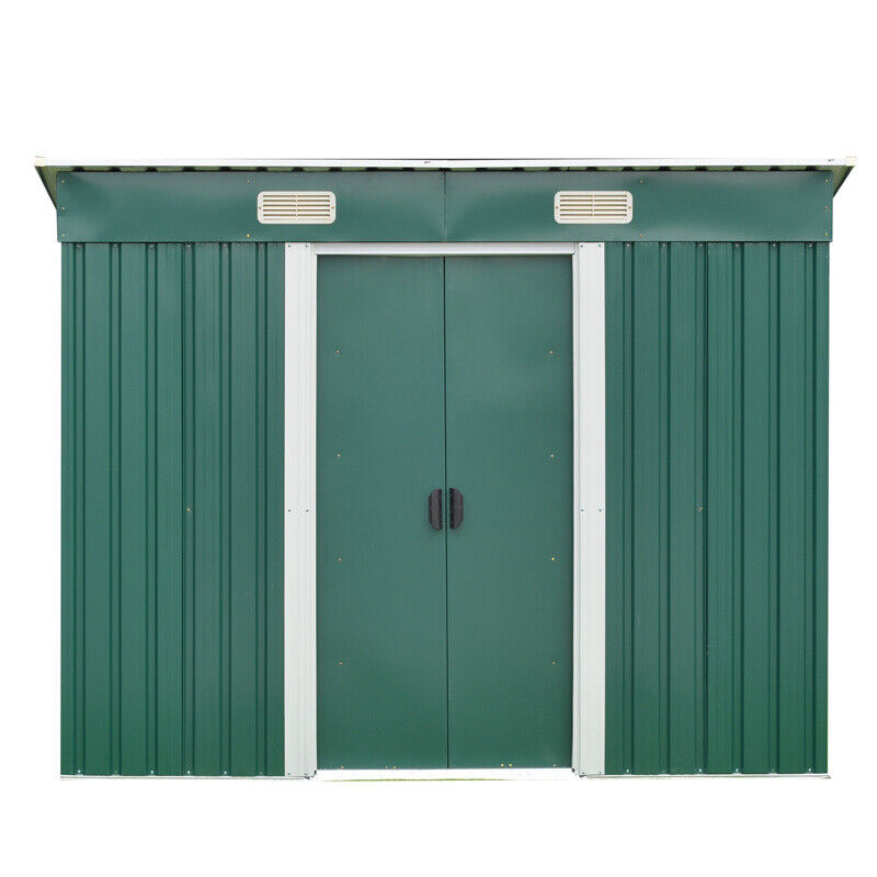 4x6ft Green Galvanized Steel Sheds Outdoor Storage w Sliding Door Foundation Kit
