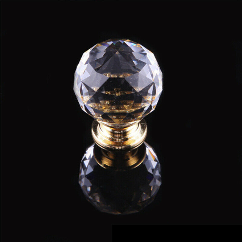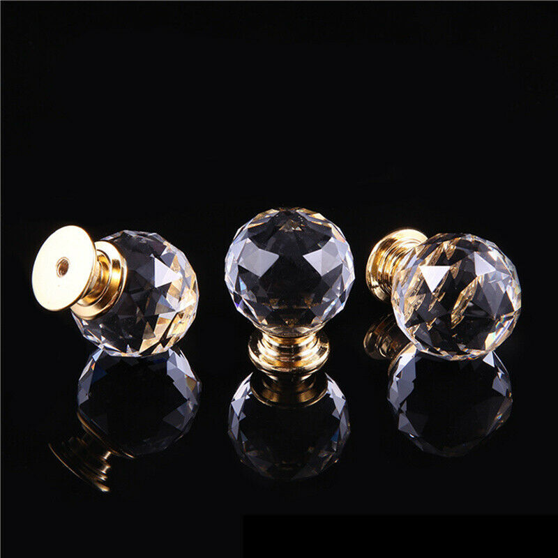 4XCrystal Diamond Glass Door Knobs Cupboard Drawer Furniture Handle Cabinet Gold
