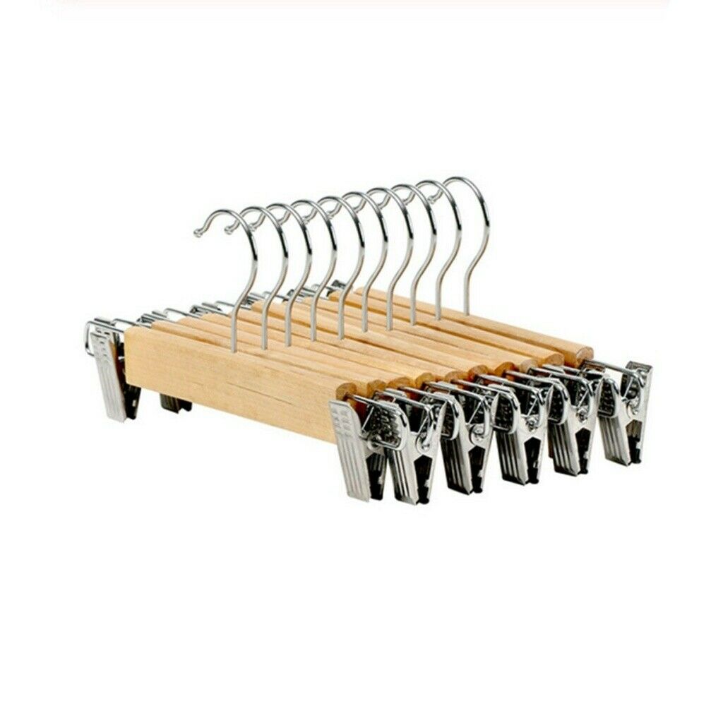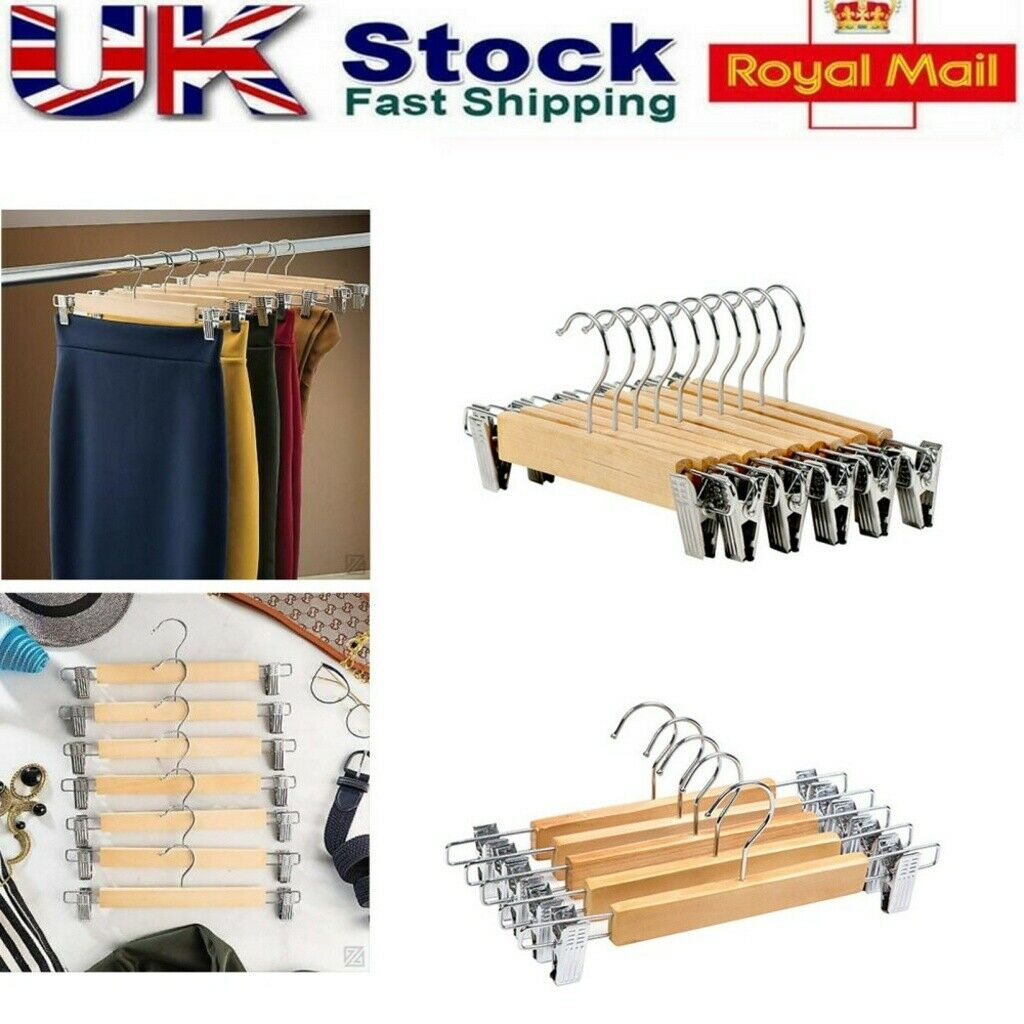 5/10/15PCS Wooden Trouser, Skirt Hangers With Clips, Coat Clothes Hangers UK