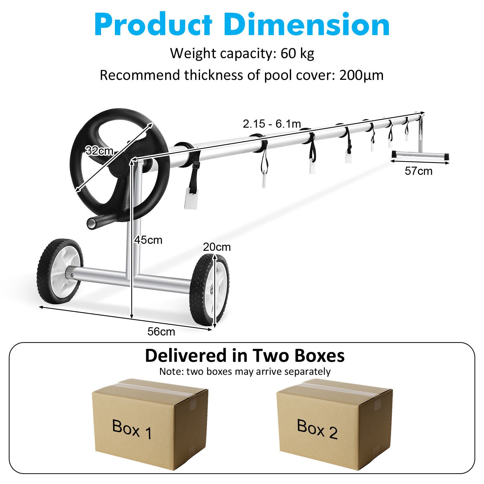 5.5 m Pool Cover Reel Set Adjustable Above Ground Pool Solar Cover Reel w/Wheel