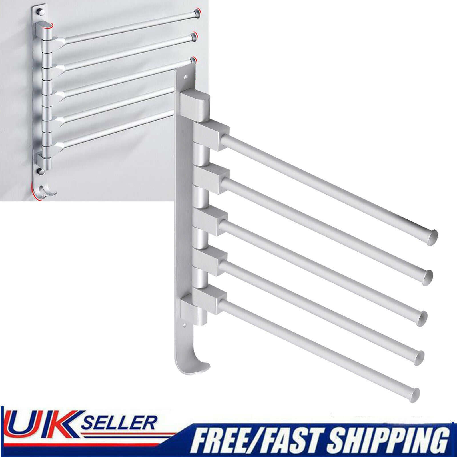 5 Arm Stainless Steel Towel Rack Holder Bathroom Wall Mounted Hanger Swivel Rail