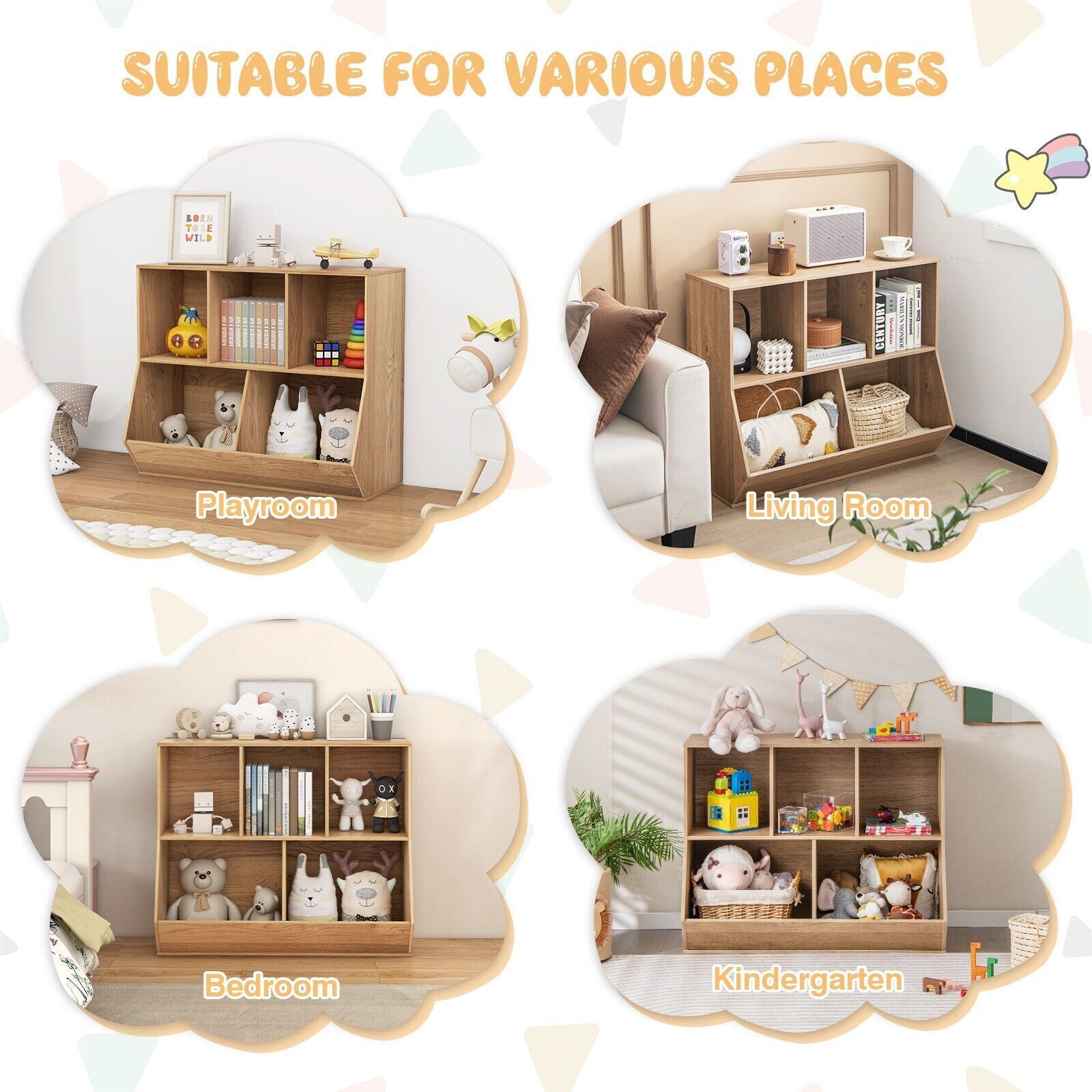 5-Cubby Kids Toy Storage Organizer Wooden Children Bookcase Bookshelf Cabinet
