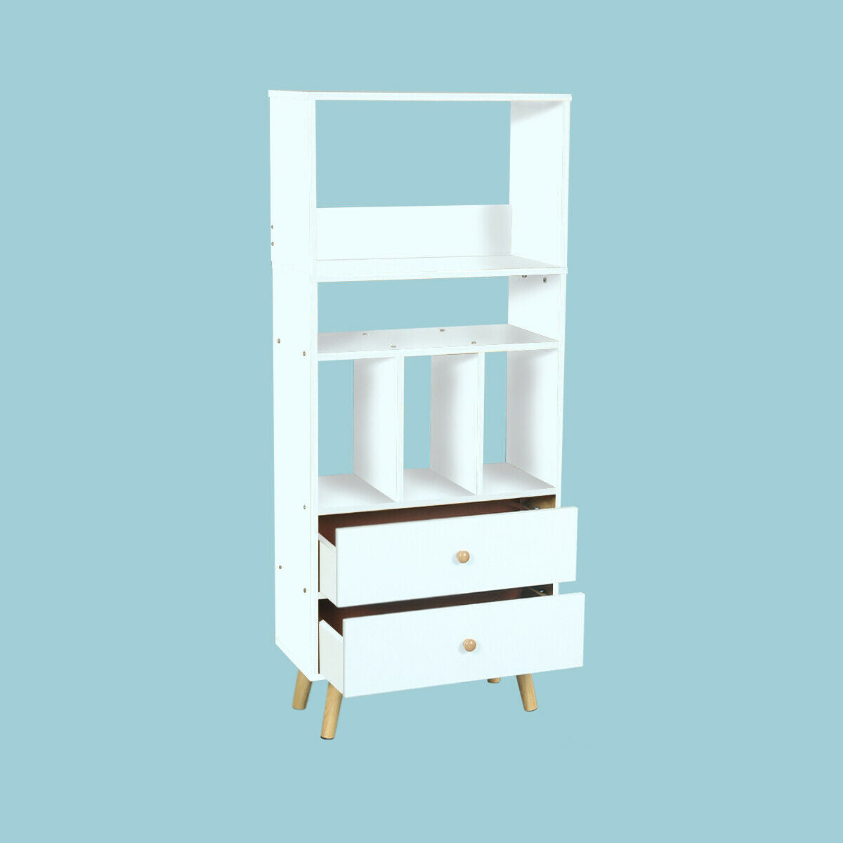5 Cubes White Bookcase with 2 Drawers Wide Display Shelving Storage Cabinet Unit