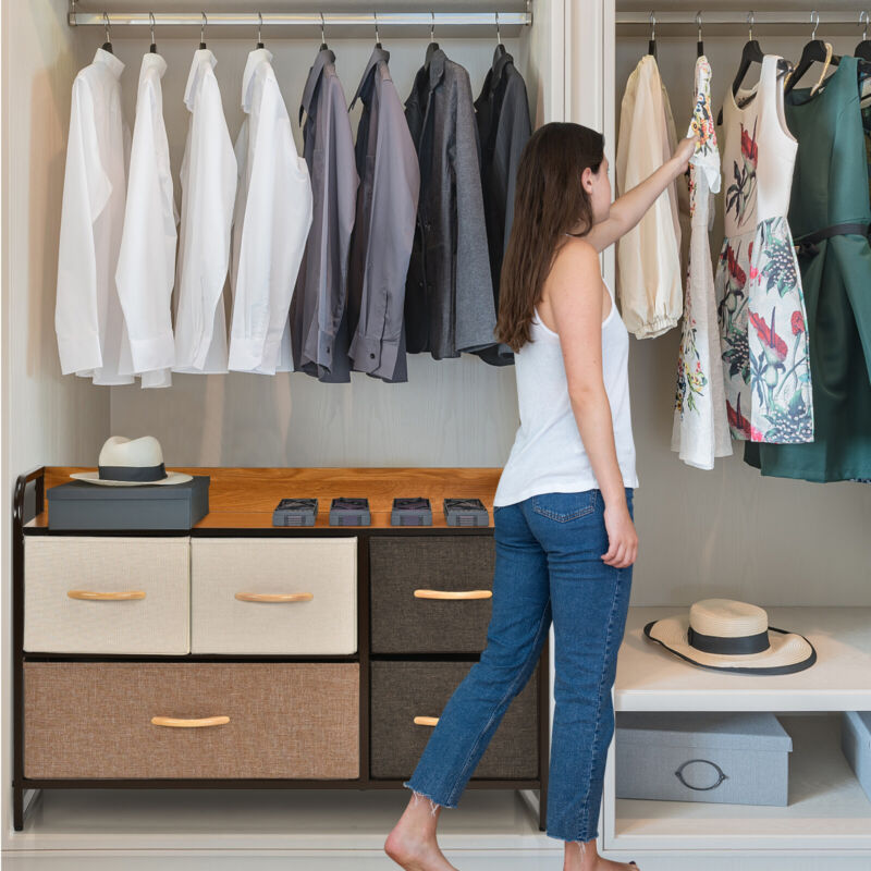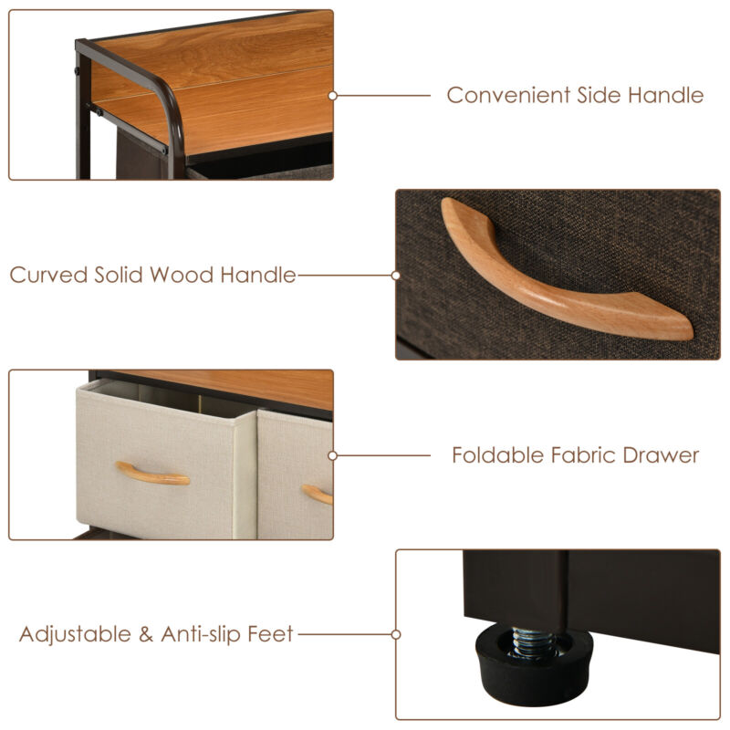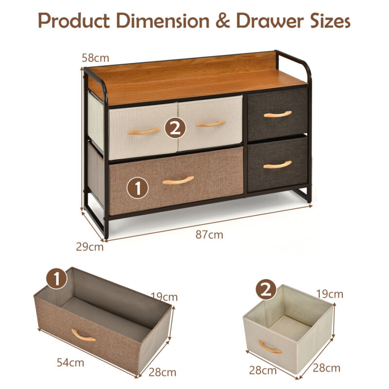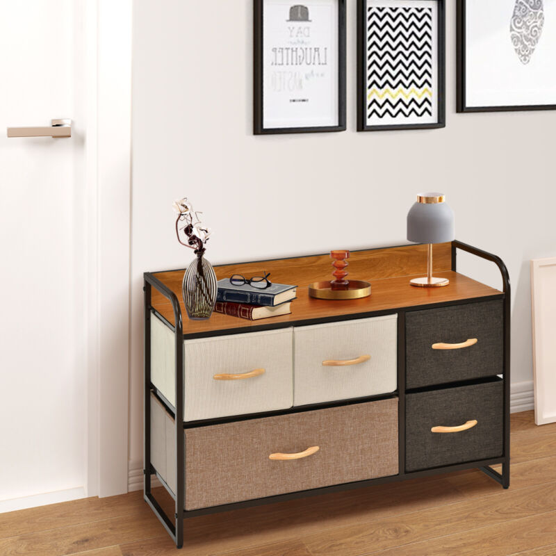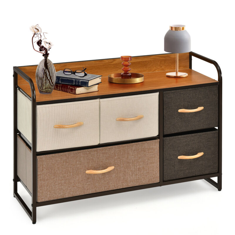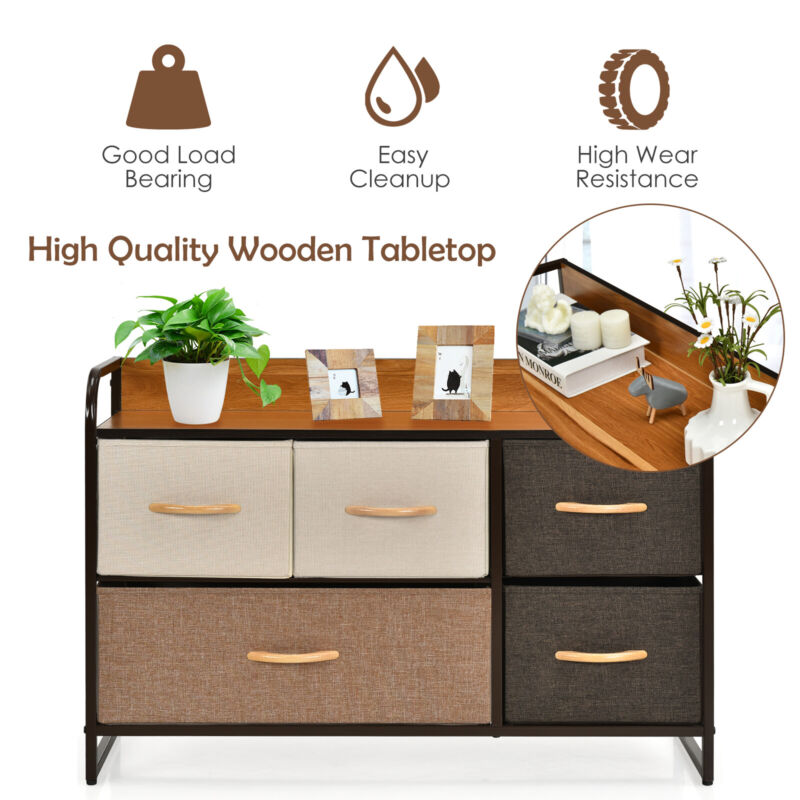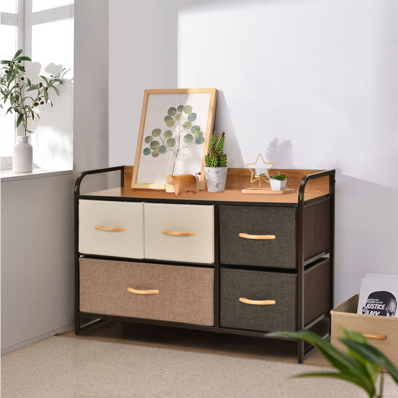 5-Drawer Dresser Fabric Chest of Drawers Storage Tower w/Wooden Top Organiser