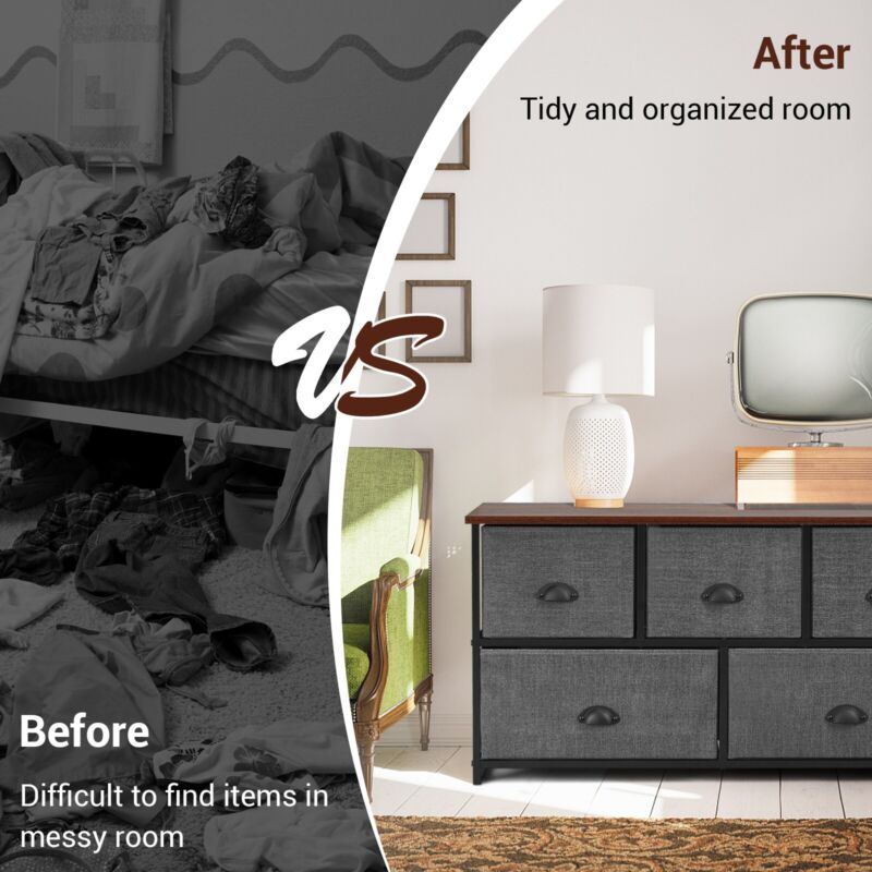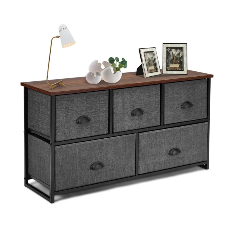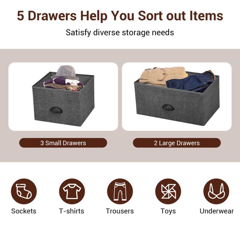 5-Drawer Dresser Storage Cabinet 2-Tier Fabric Chest of Drawers Removable Basket