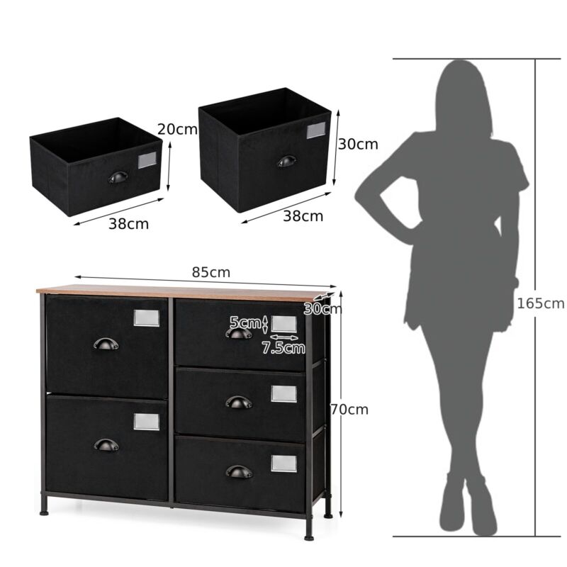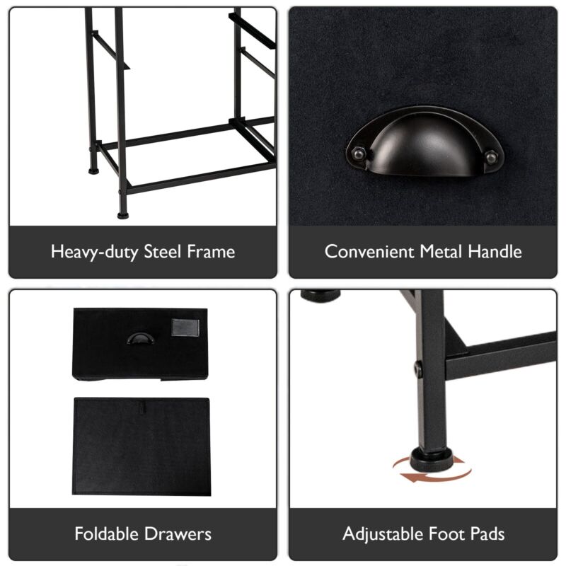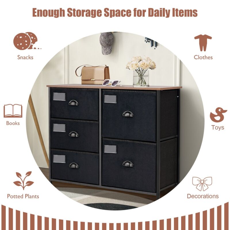 5-Drawer Dresser Storage Cabinet Fabric Storage Tower with Folding Drawers