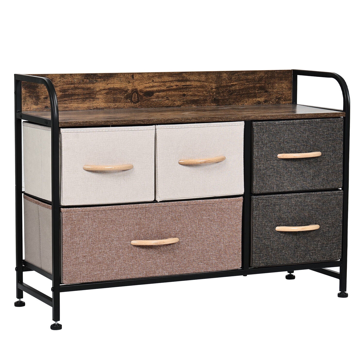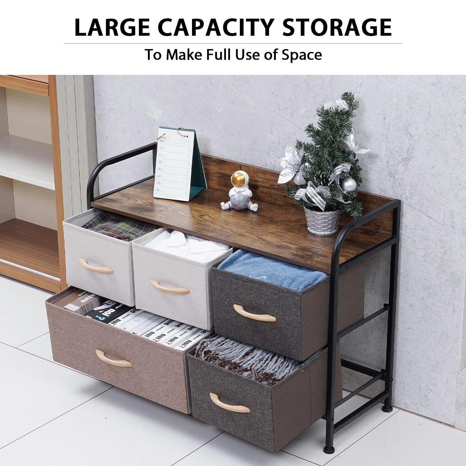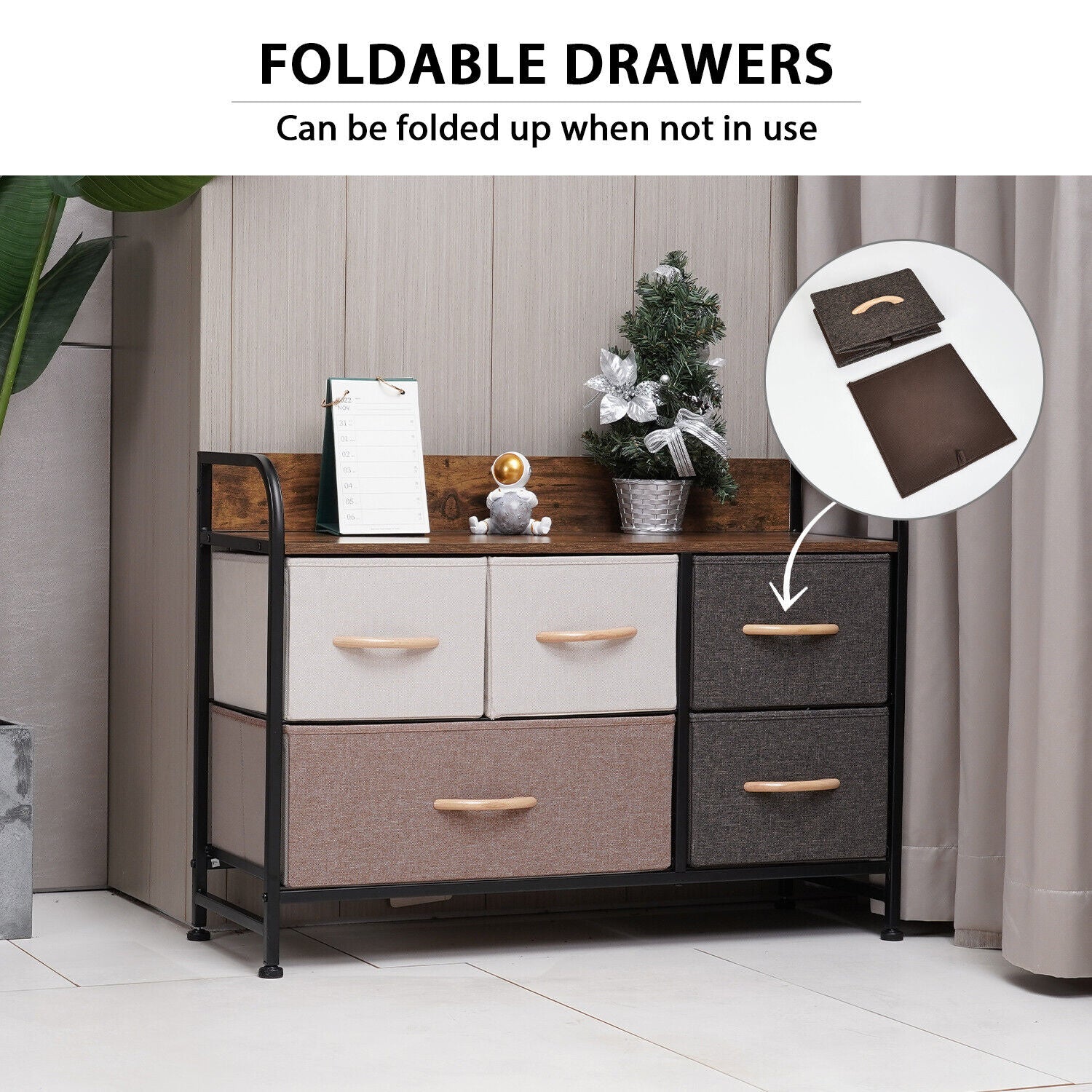 5-Drawer Fabric Chest of Drawers 2 Tier Storage Organizer Unit Bedroom Dresser