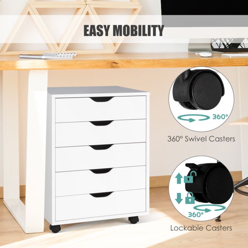 5-Drawer Mobile Wooden Dresser Chest Rolling Storage Cabinet Storage Cabinet