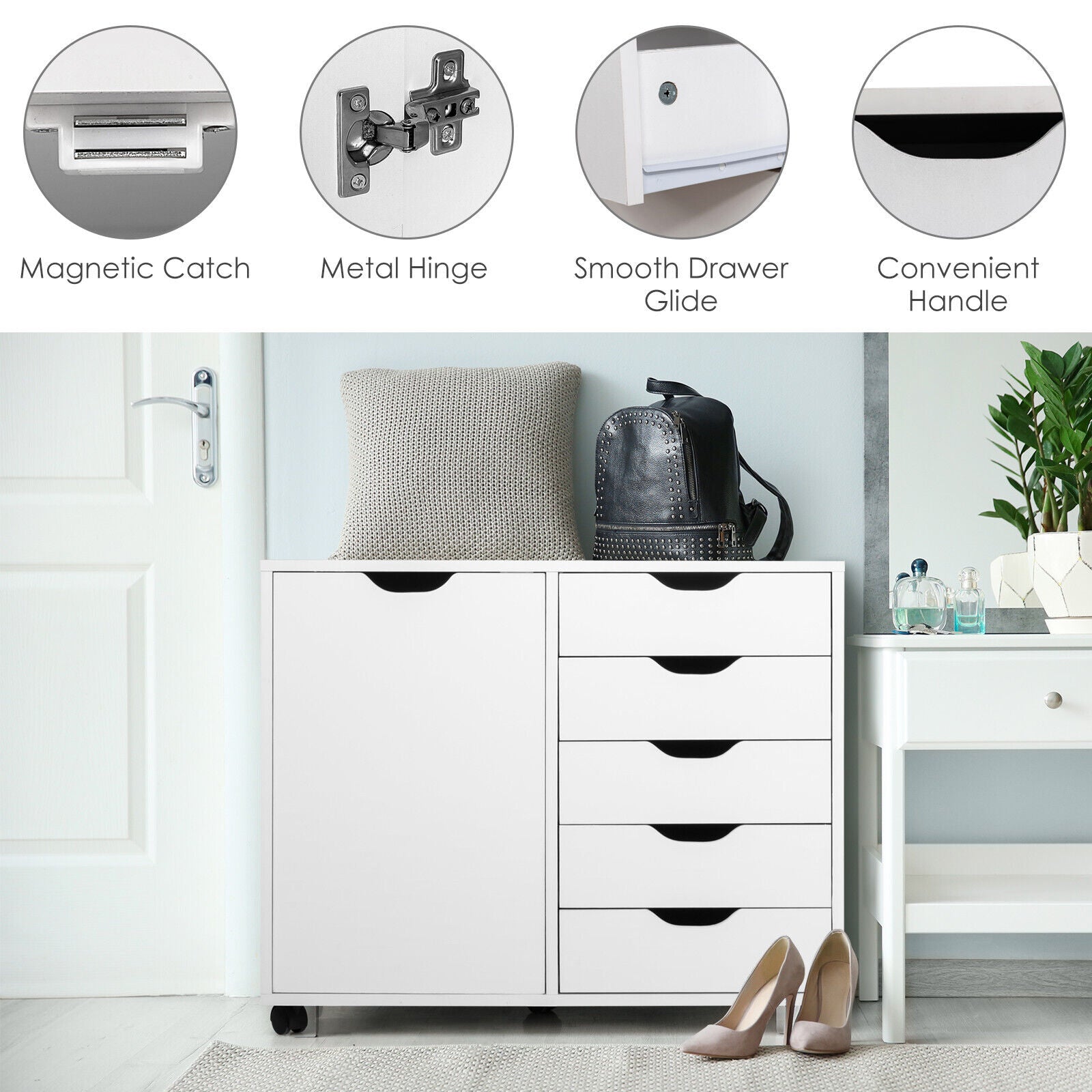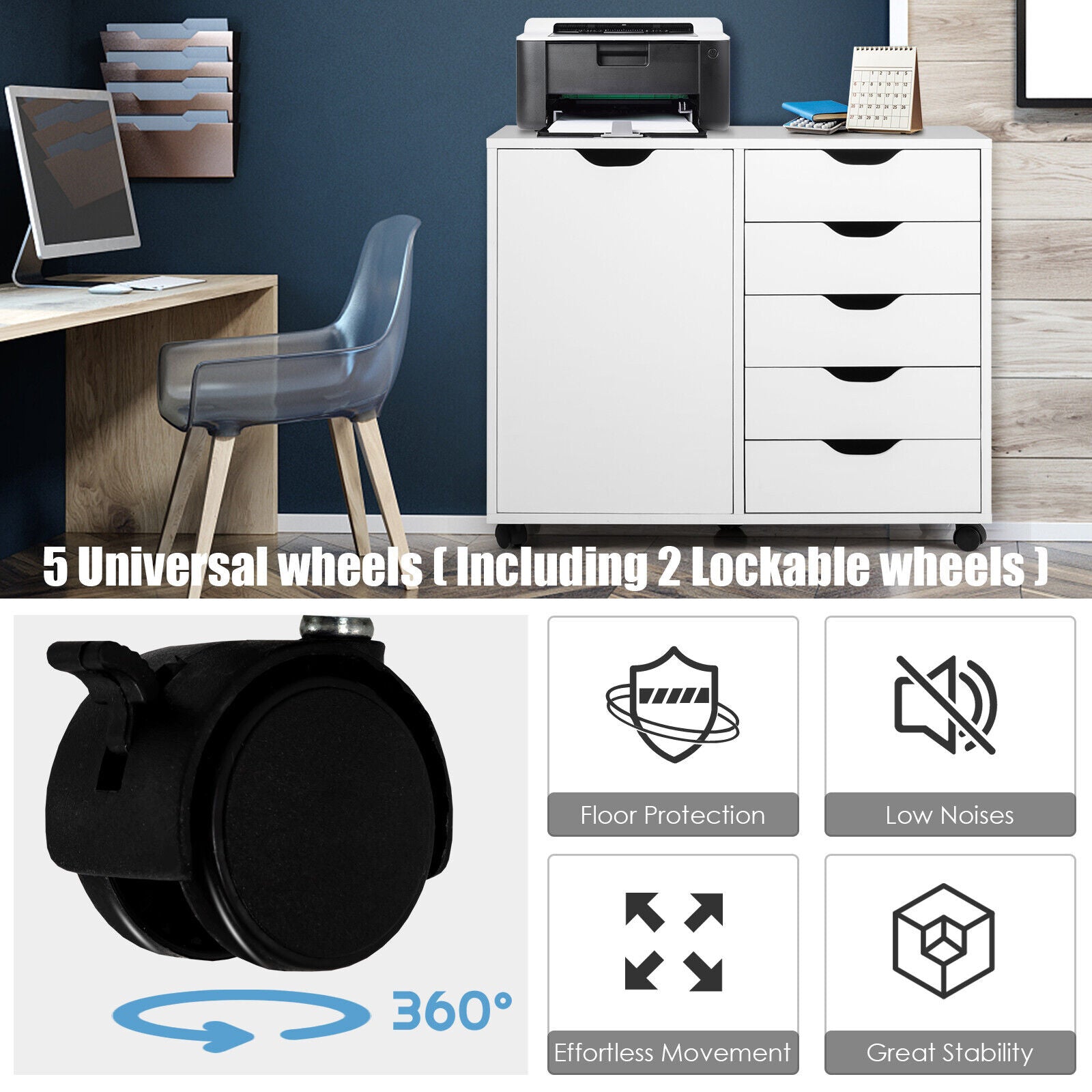 5-Drawer Modern Storage Cabinet Printer Stand Mobile Side Lateral Filing Cabinet