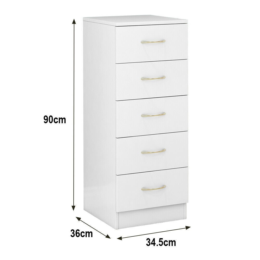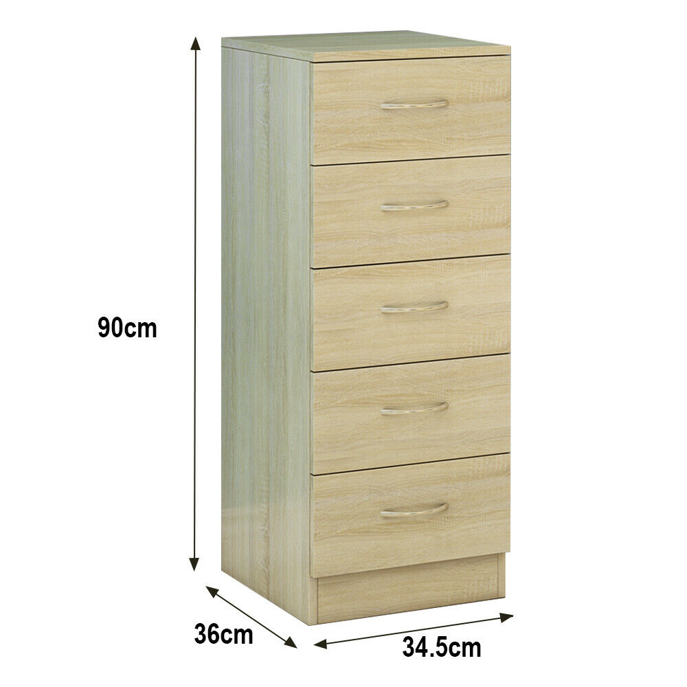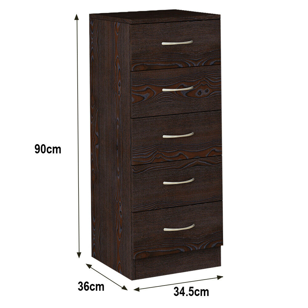 5 Drawers Chest of Drawers Narrow Tall Cabinet Bedroom Hallway Storage Furniture