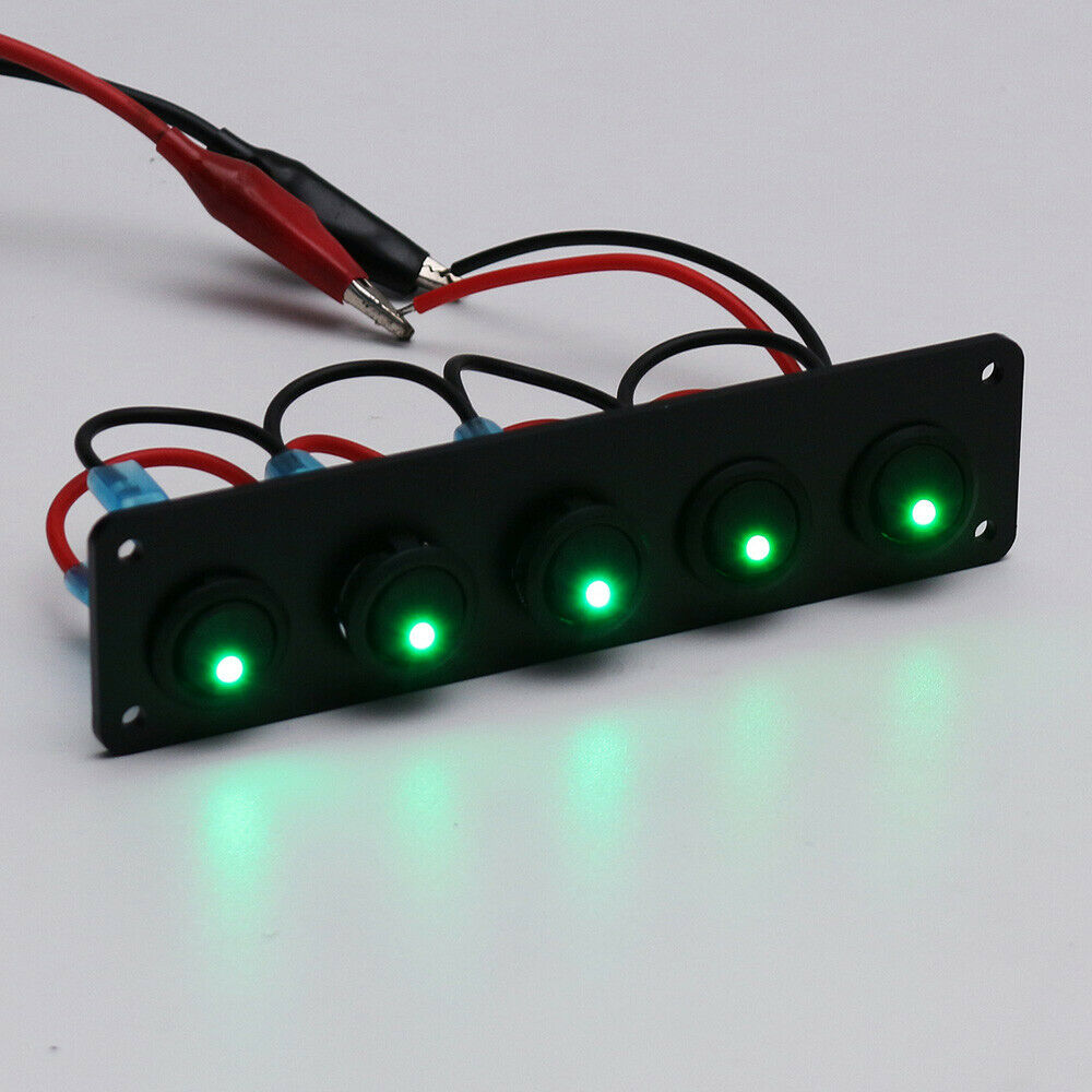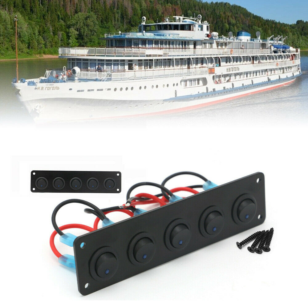 5 Gang Rocker Switch Panel DC 12V-24V LED Light Yacht Marine Boat Breaker