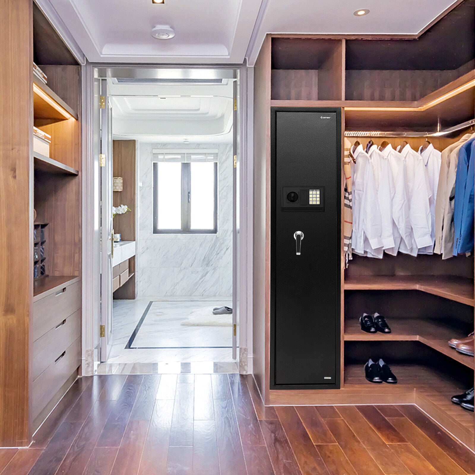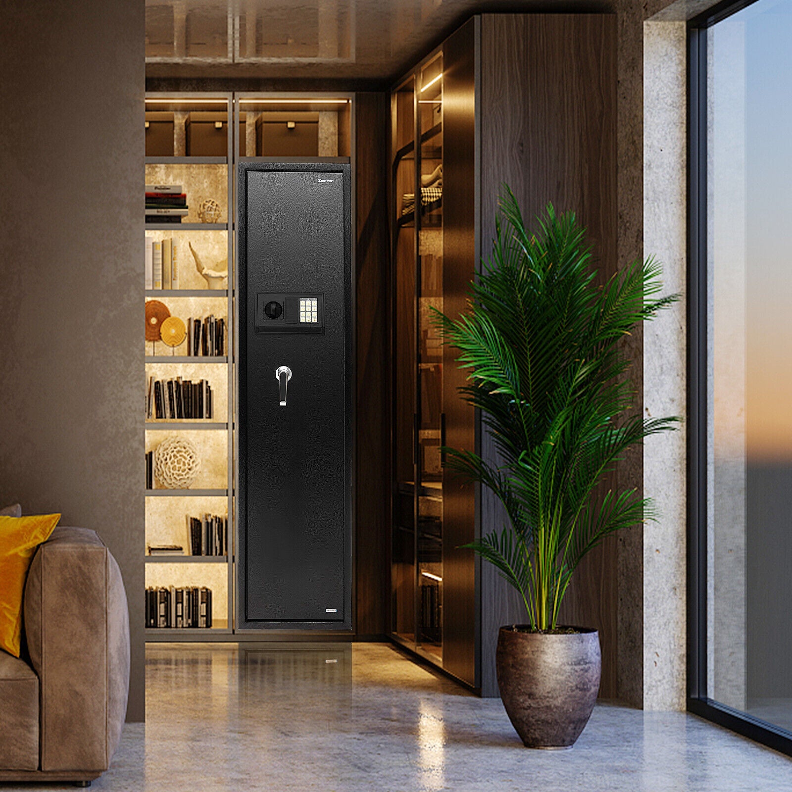 5-Gun Metal Security Cabinet Long Gun Shotgun Rifle Safe Box w/ Ammo Lockbox