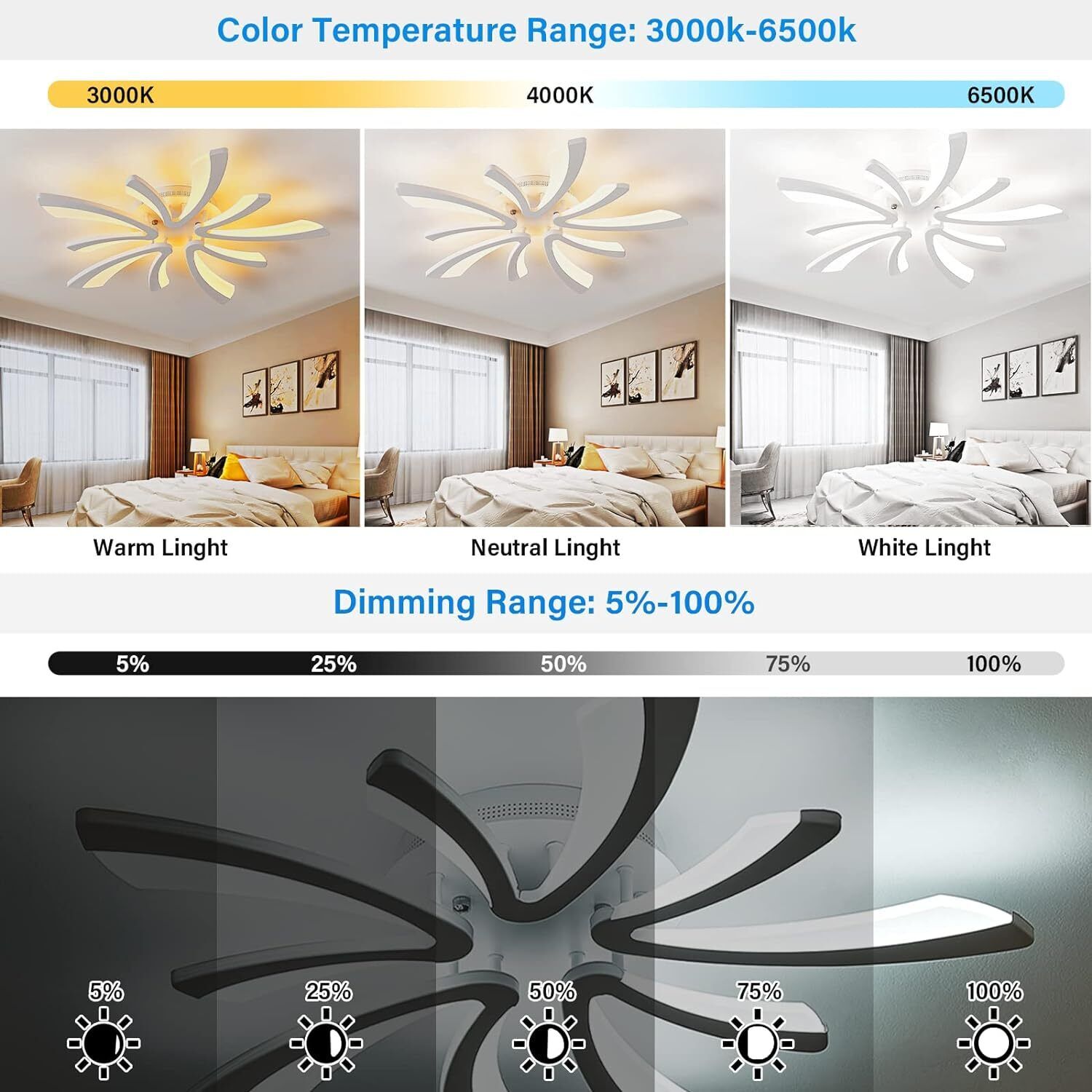 5 Heads LED Ceiling Light V-shaped Chandelier Lamp Bedroom Living Room + Remote