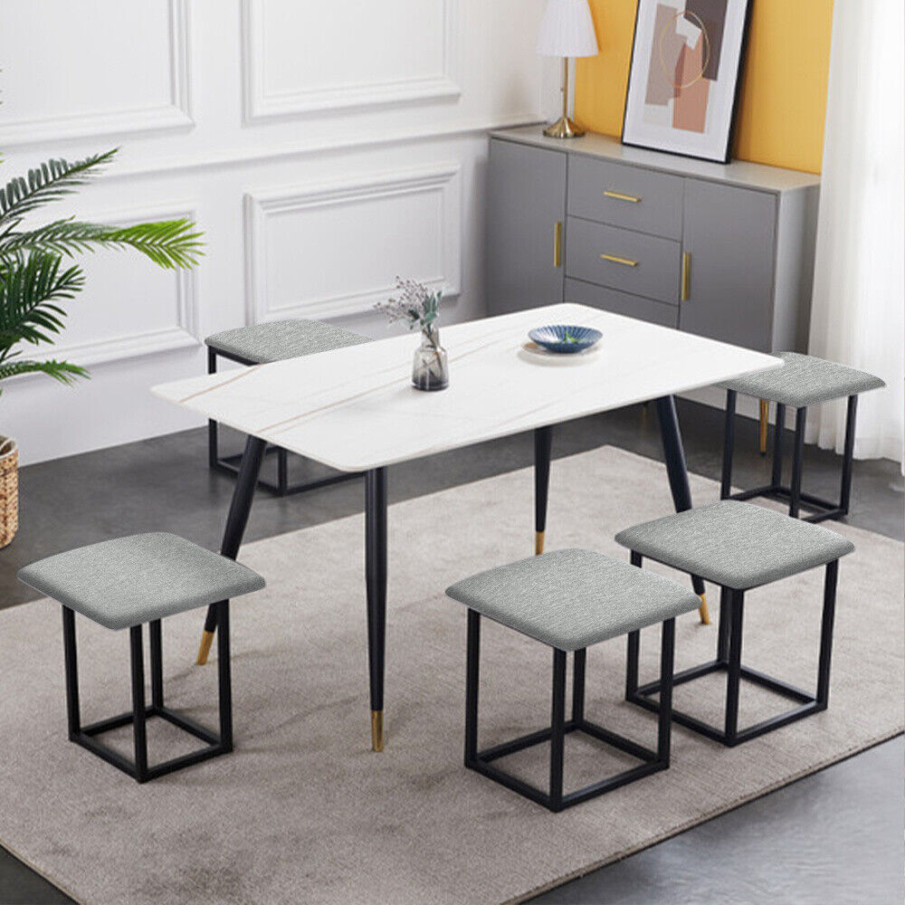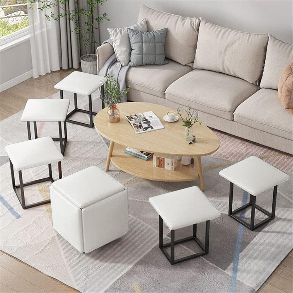 5 in 1 Bar Stools for Kitchen Counter Backless Leather/Linen Stool Dining Cafe