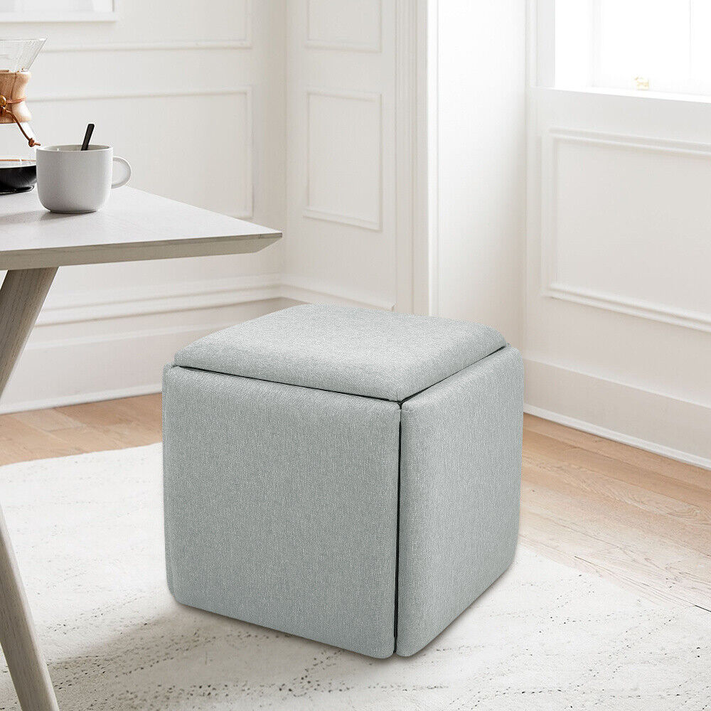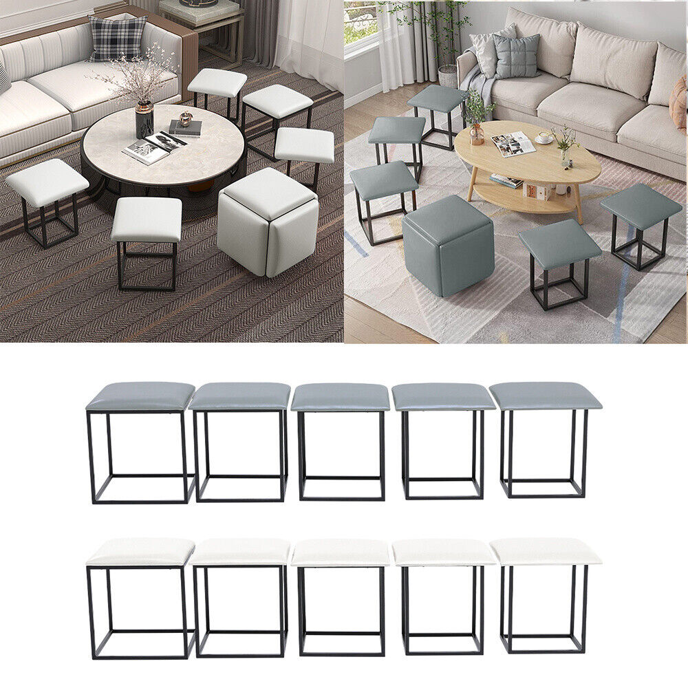 5-in-1 Stool Set Upholstered Nested Stools Sofa Footstool Cube Dining Chair Seat