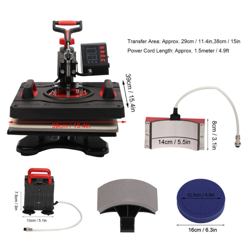 5 in1 38x38cm Heat Press Machine T-Shirt Mug Hat Cap Plate Transfer Printer UK