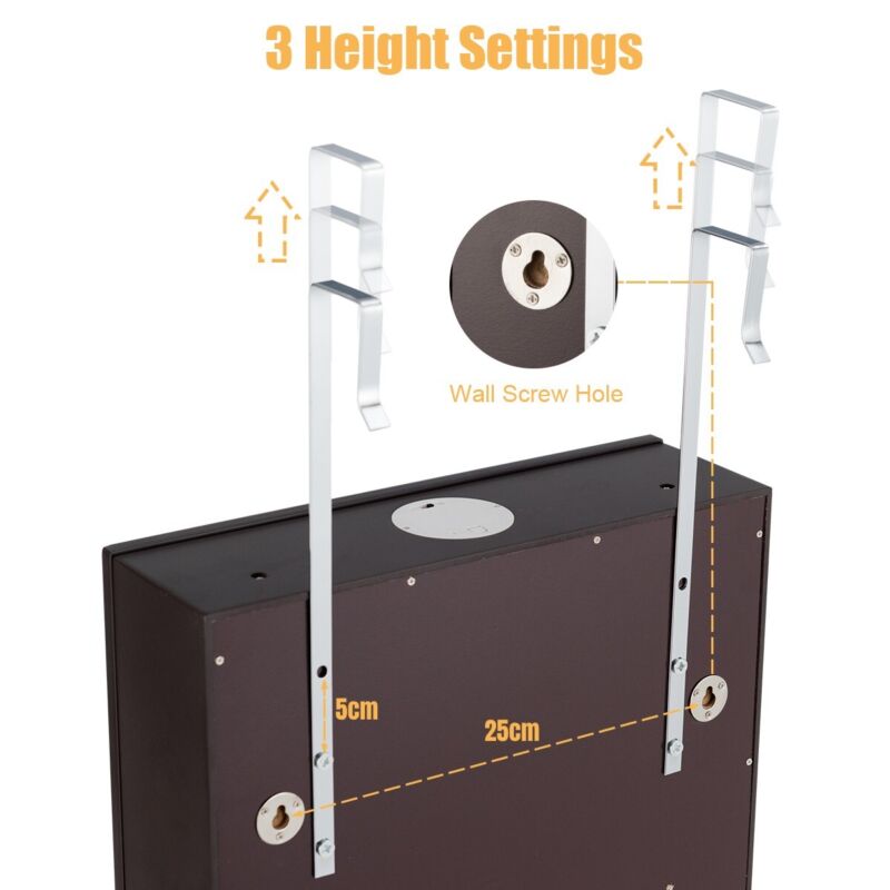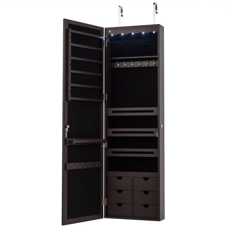 5 LED Lights Jewelry Cabinet Lockable Wall/Door Mounted Jewelry Armoire w/Mirror