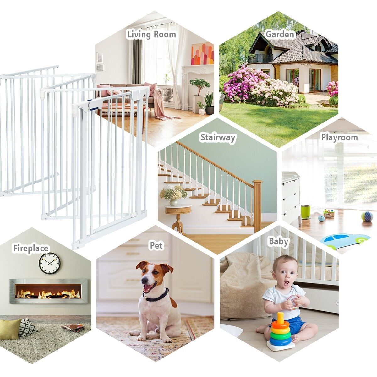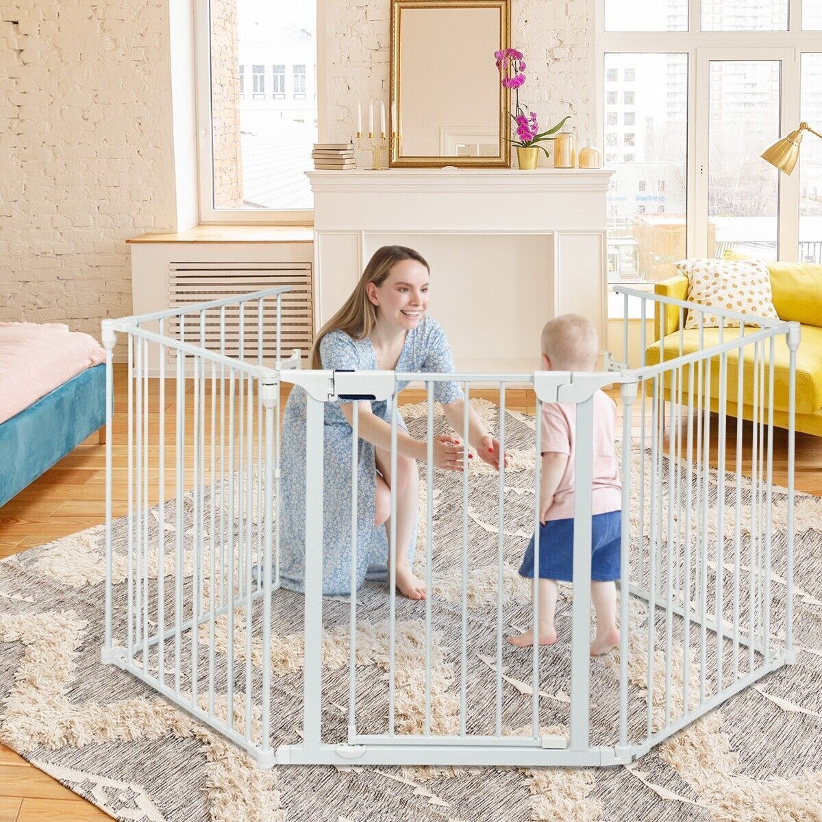 5 Panel Fireplace Fence Baby Pet Safety Gate Playpen Adjustable Room Divider